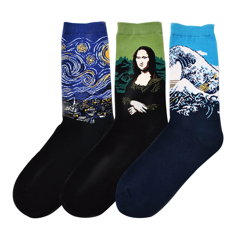 Носки женские, в стиле Ван Гога, зима серия масляной живописи, 3 парыЛот