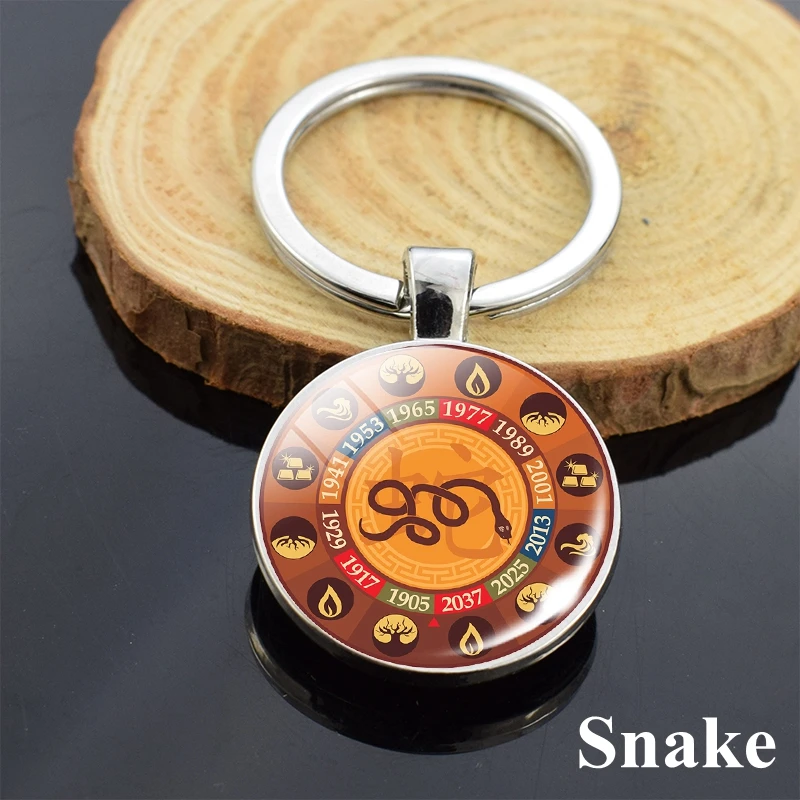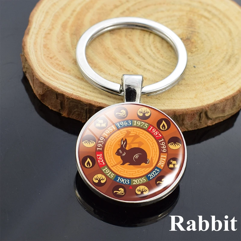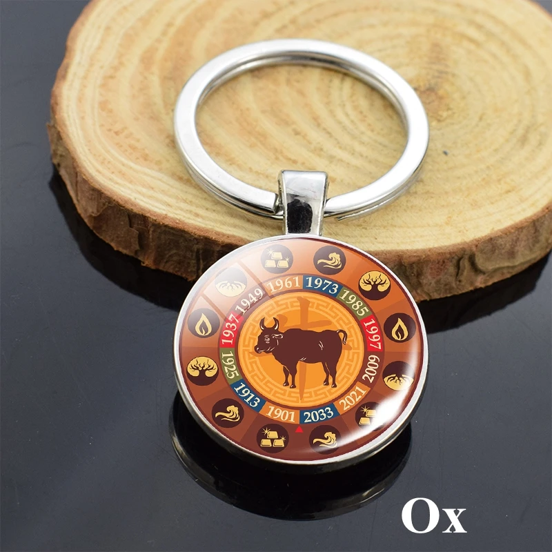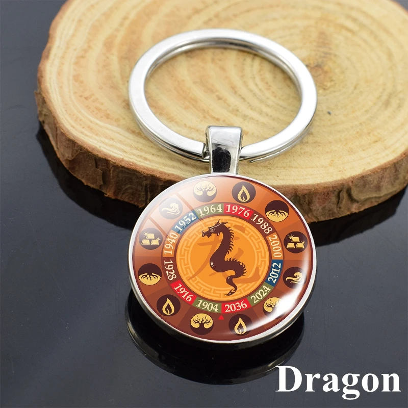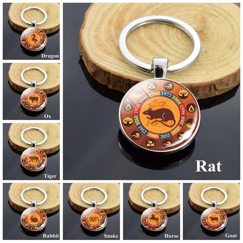 Брелок в год крысы 2020, брелок со счастливым китайским знаком зодиака, стеклянный шар, брелок, кольцо для ключей с 12 знаками Зодиака, ювелирные изделия с тигром, драконом, лошадью, собакой, свиньей