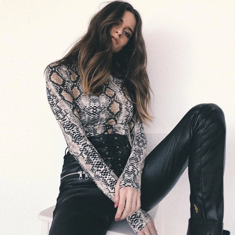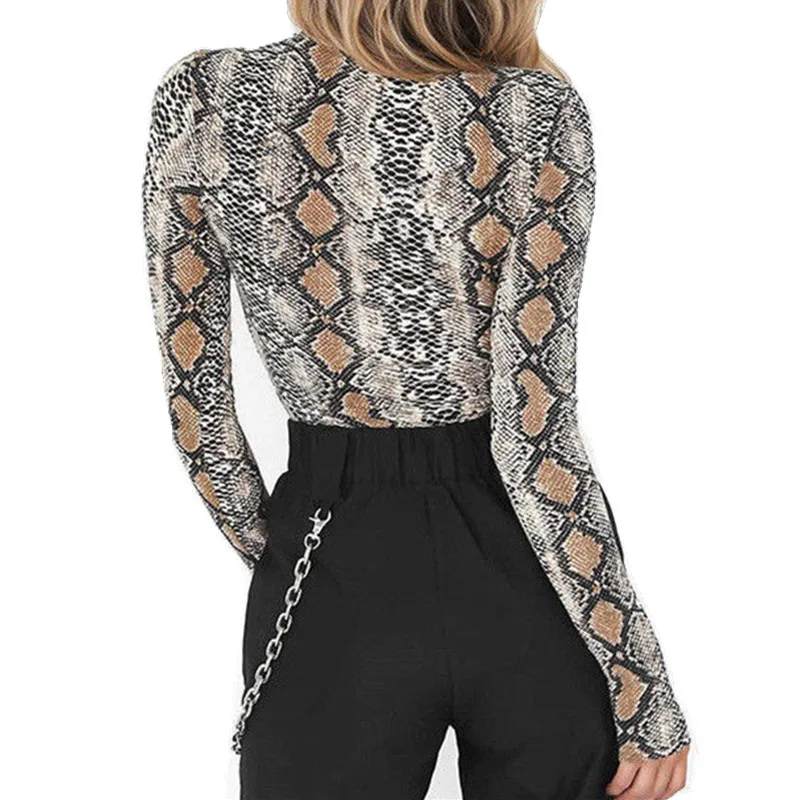 Женский боди с принтом змеиной кожи, женские боди, женский комбинезон с длинным рукавом, топы с высокой посадкой, женские боди