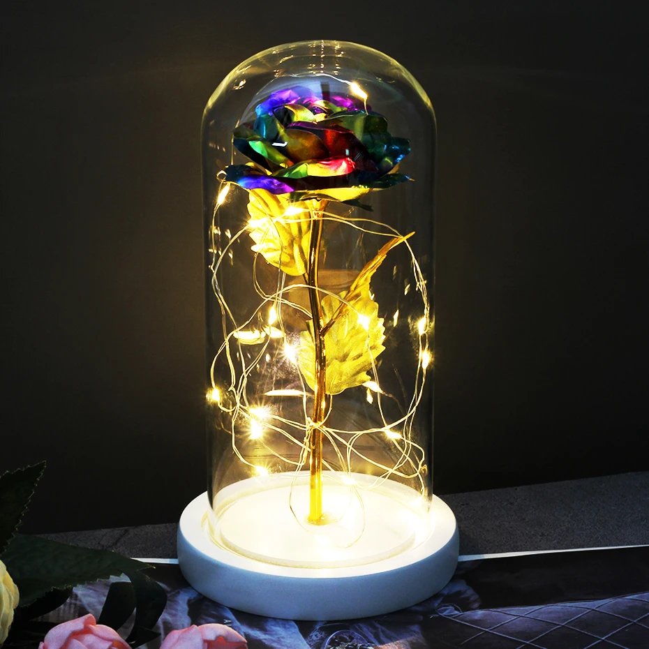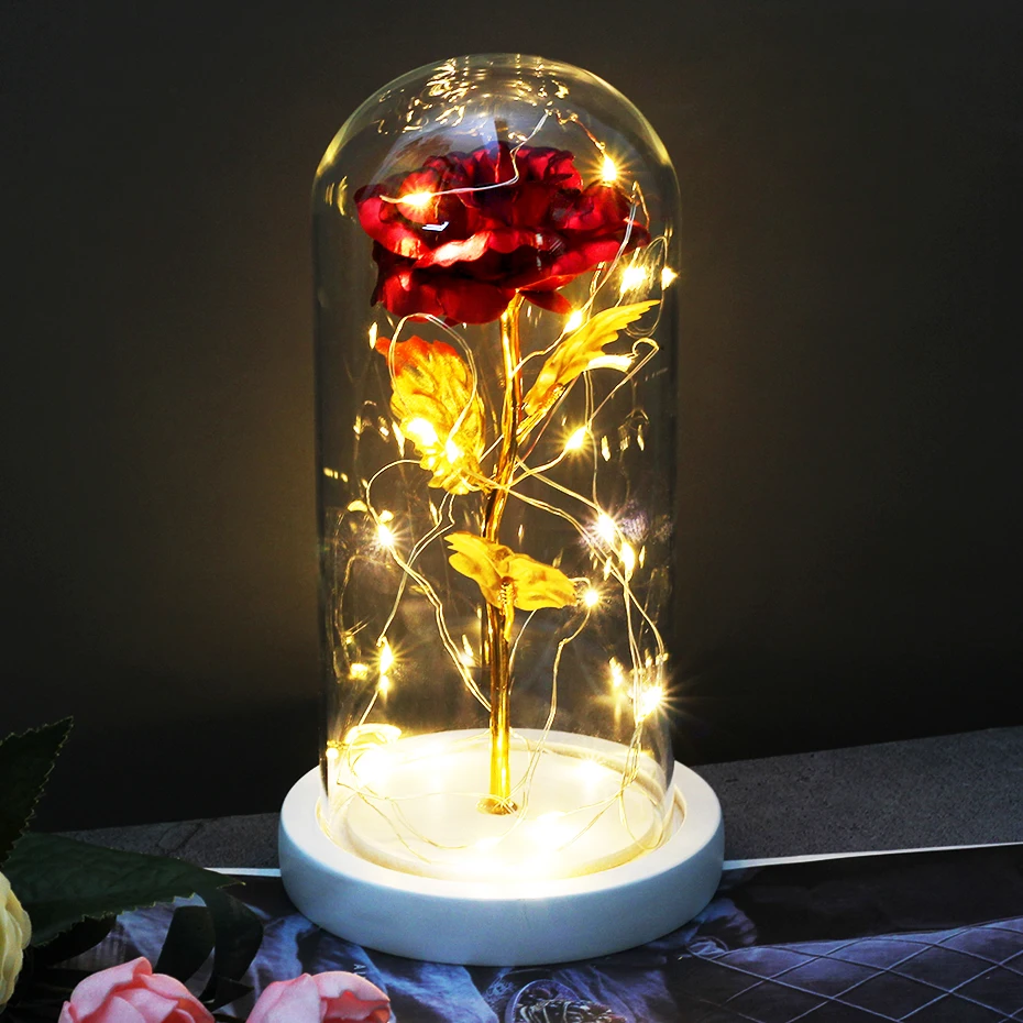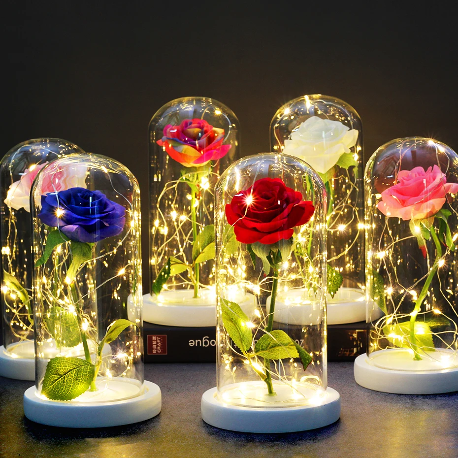 Роза в стеклянном куполе Красавица и чудовище, свадебное украшение на день рождения, искусственные цветы, подарок на день отца, День матери