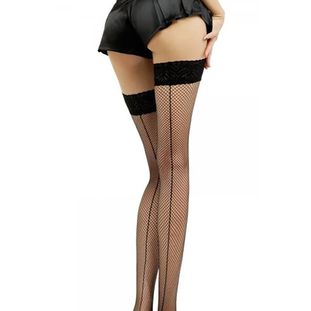 Женские сексуальные эротические бриджи, кружевной топ, черные сетчатые чулки с линией сзади, чулки выше колена