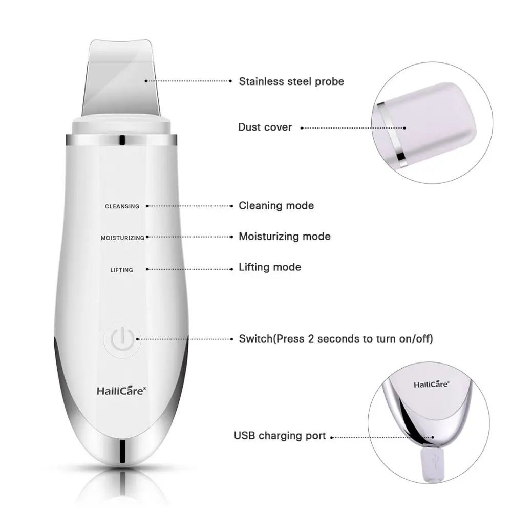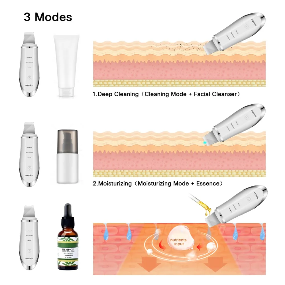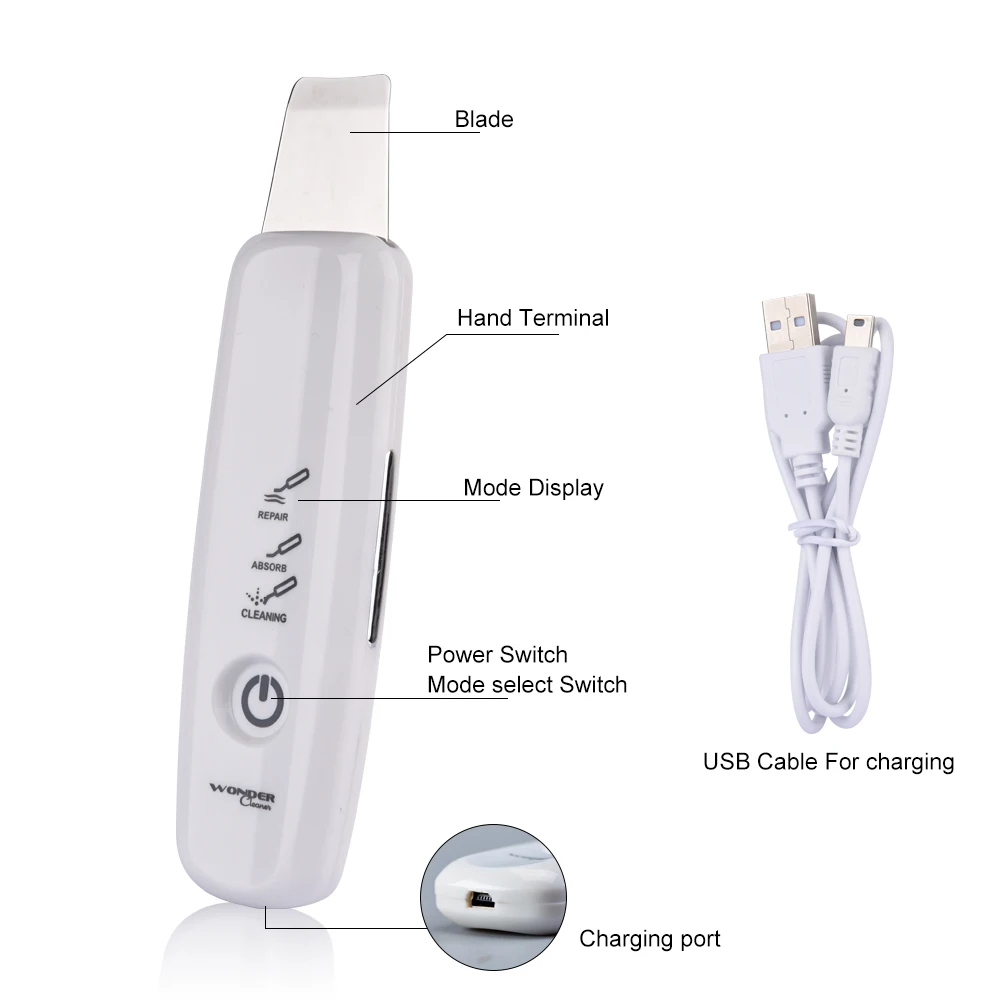 Вибратор для скруббера кожи Ультразвуковое Очищение лица для черных точек пилинг Лопата против старения уменьшение морщин перезаряжаемый уход за кожей