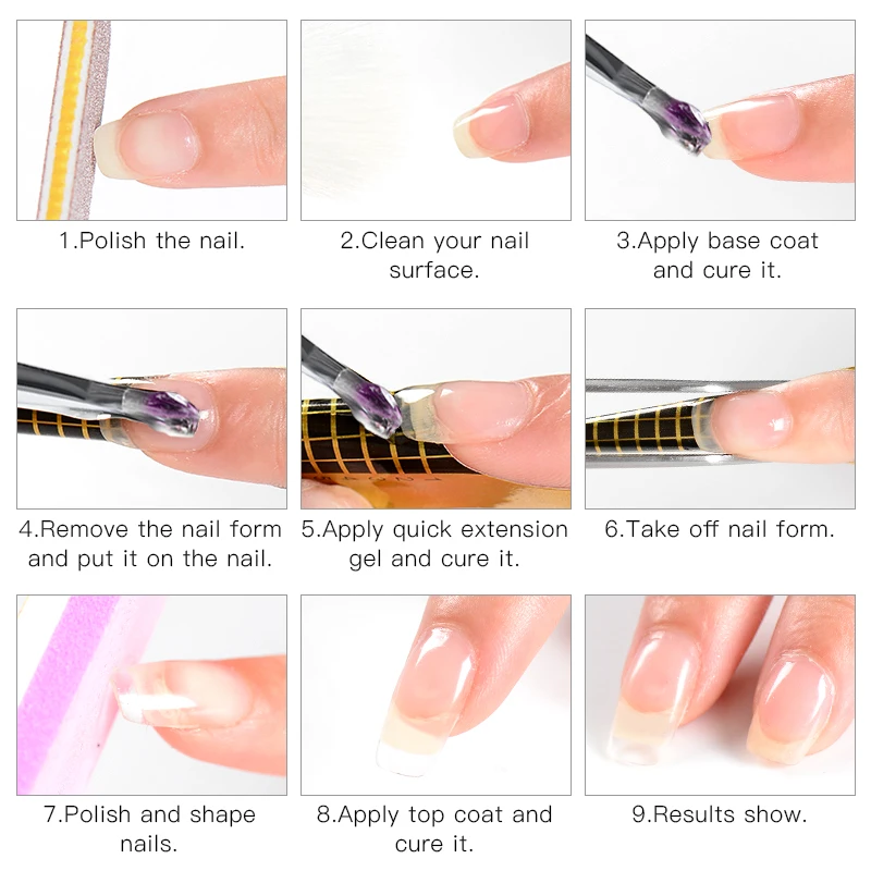 В отличие от твердого геля, полигель для ногтей не самовыравнивается, но остается там, где вы размещаете его; В отличие от акрила, он не затвердевает, пока не вылечится в светодиодной или УФ-лампе