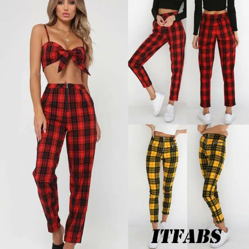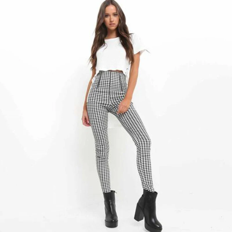 Hirigin женские клетчатые брюки на молнии с высокой талией облегающие эластичные брюки-Карандаш обтягивающие повседневные деловые женские модные длинные брюки