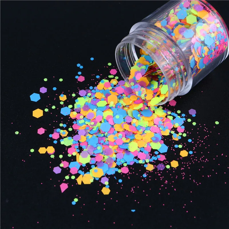 1 банка блеск для ногтей разноцветный прозрачный белый микс шестигр...