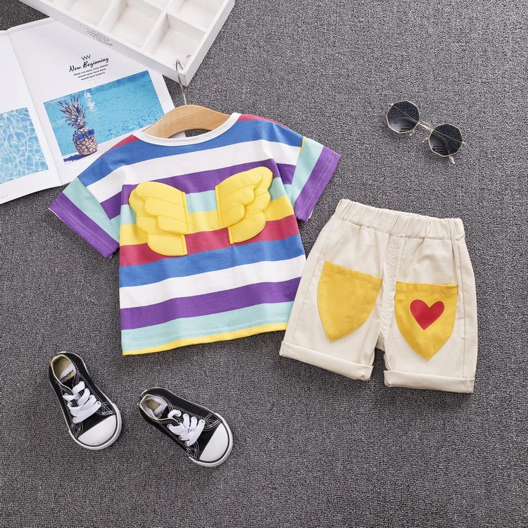 Летняя одежда для маленьких мальчиков и девочек, Спортивная футболка + шорты на лямках, комплекты одежды для новорожденных мальчиков и девочек, комплекты на день рождения, костюм для детей