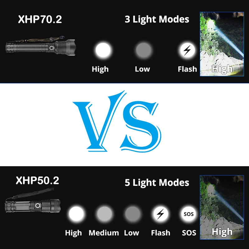 • Мощный светодиодный фонарик с использованием CREE XLamp XHP70.2 светодиодный фонарь с высоким уровнем люменов, достигаемый до 250000 лм
