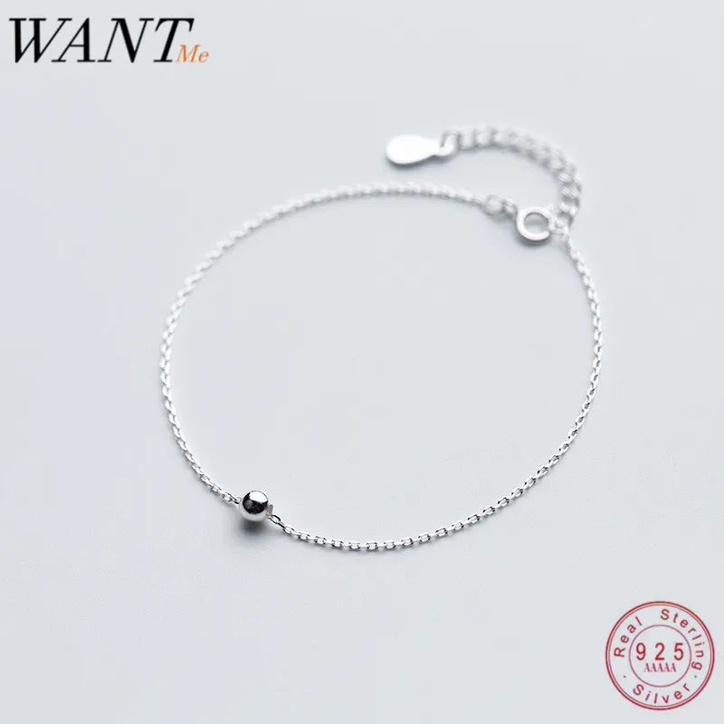 Женский браслет-цепочка WANTME, минималистичный блестящий браслет из 100% серебра 925 пробы с бусинами, Подарочные ювелирные изделия для подростков