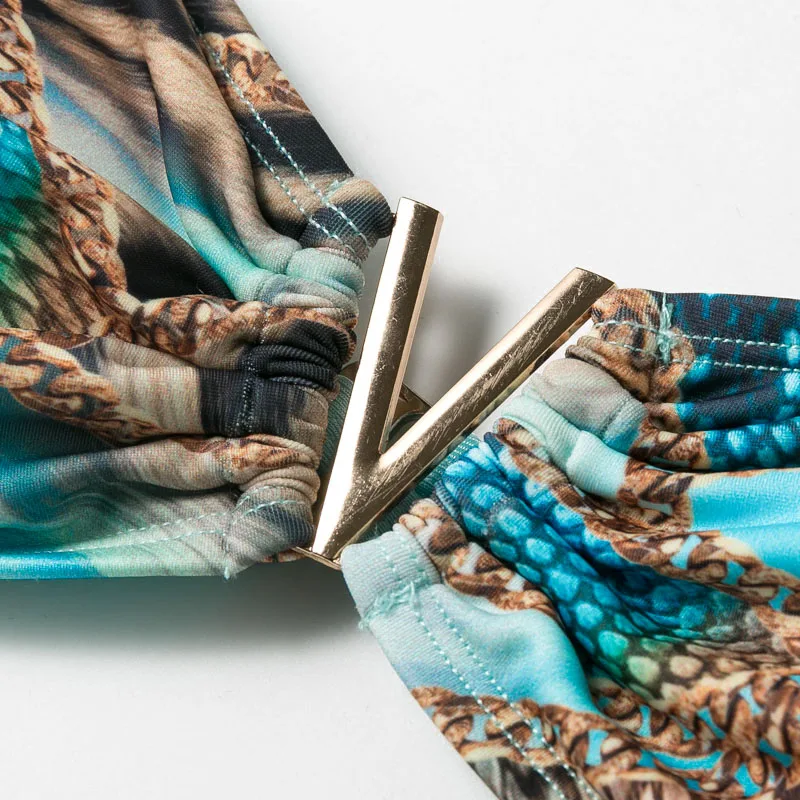 В-X пикантный принт в виде змеиной купальник женский, v-образный вырез, купальник для женщин, бандаж, бикини, набор, Бразильский купальный костюм летняя