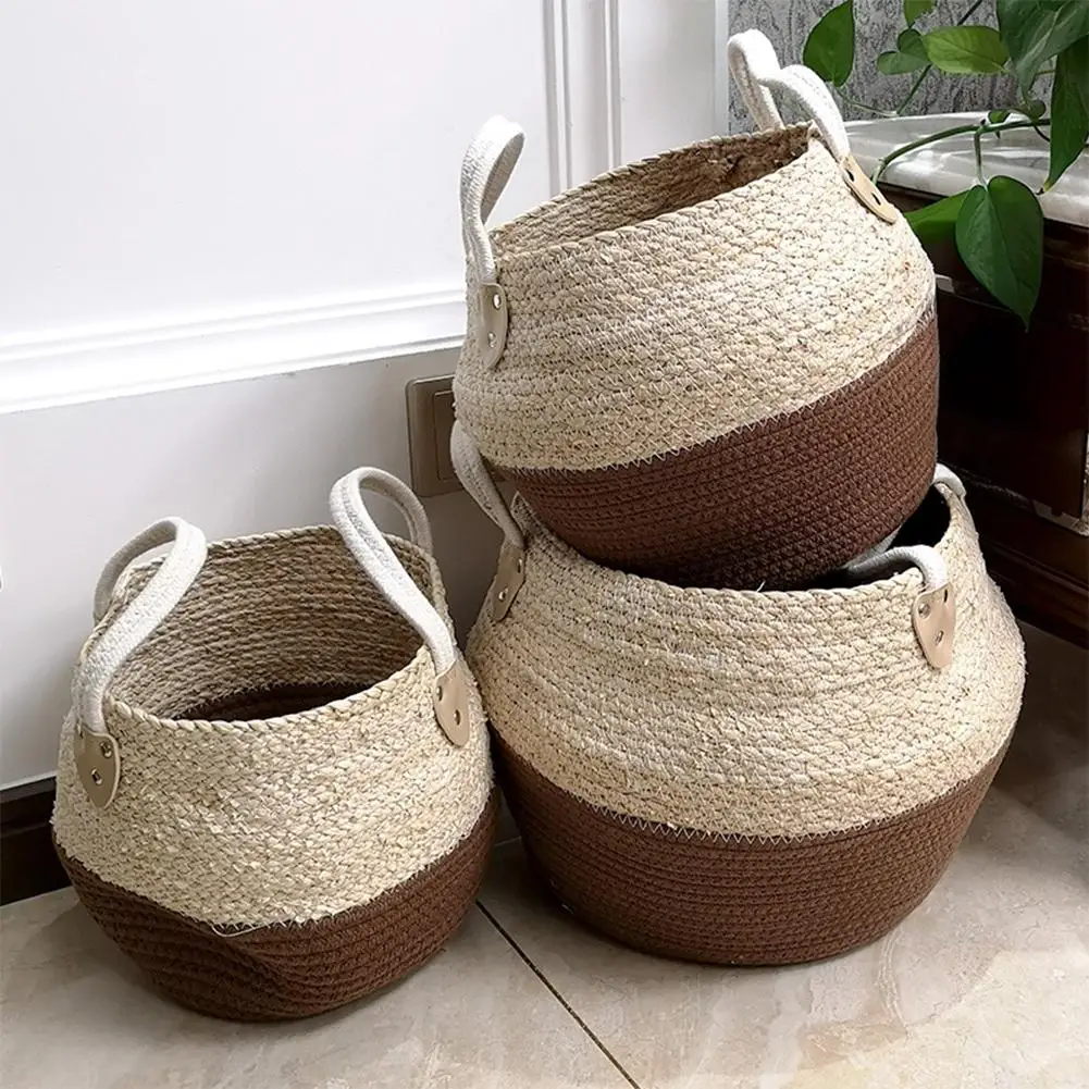 Соломенный цветочный горшок из ротанга, плетеная корзина для хранен...