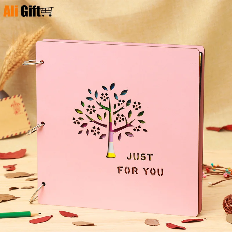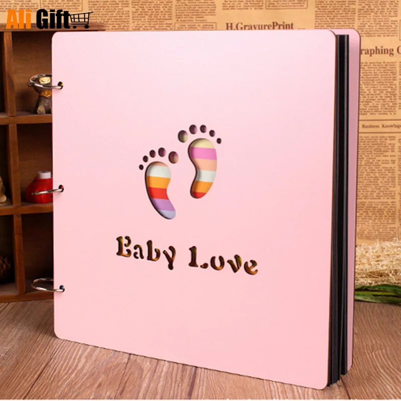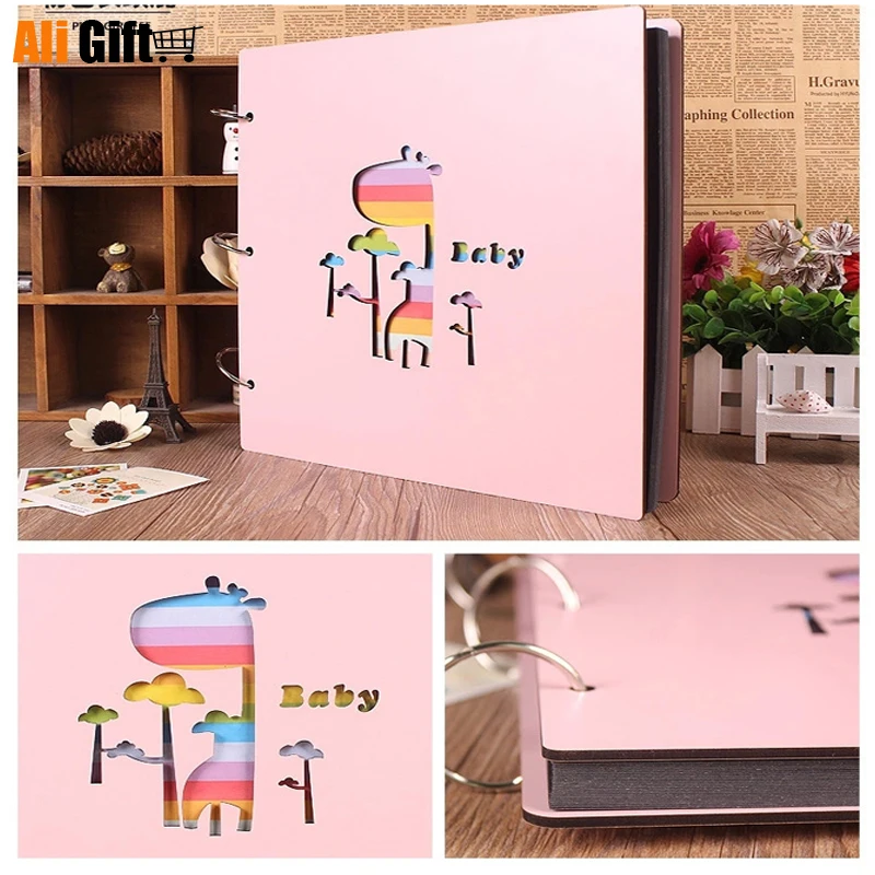 16-дюймовый большой фотоальбом с деревянной обложкой, альбом сделай сам ручной работы, с вставками в виде свободных листьев, персонализированный альбом для малышей и влюбленных, альбом для фотографий, скрапбукинг, подарок