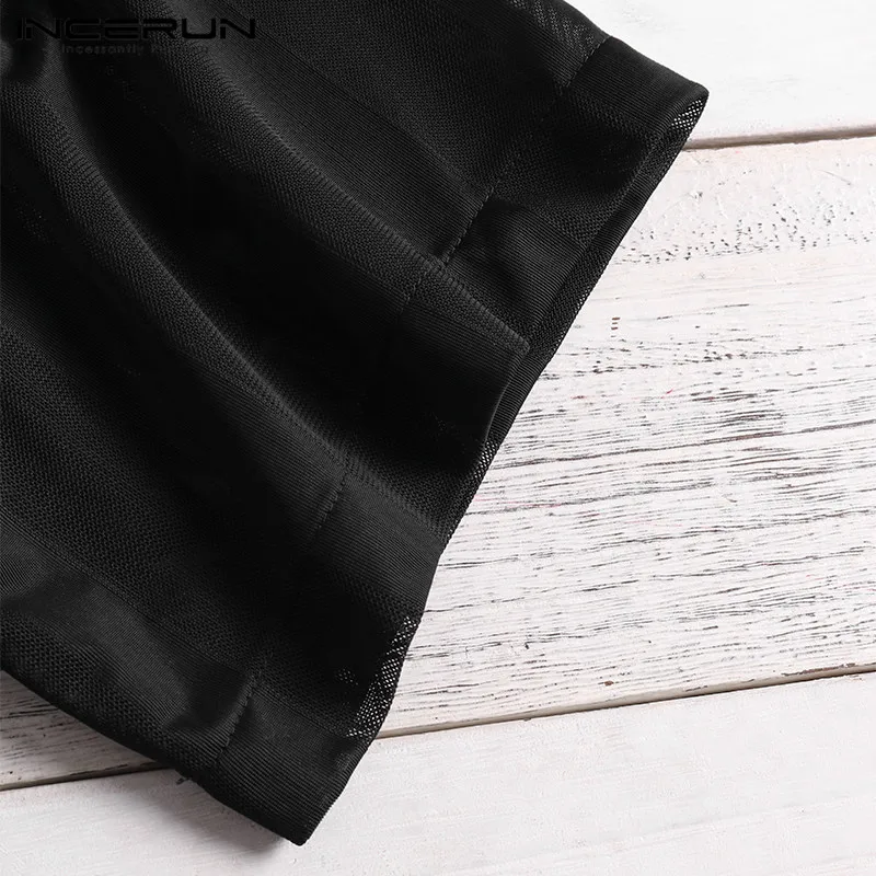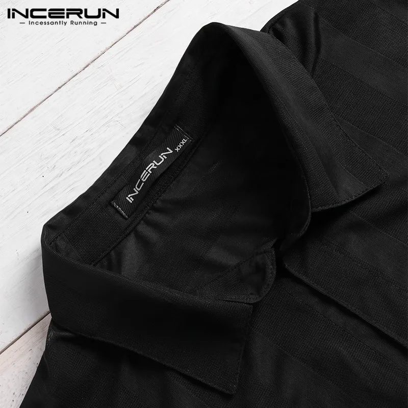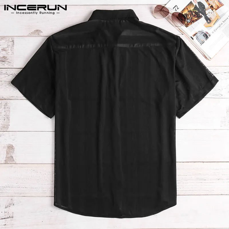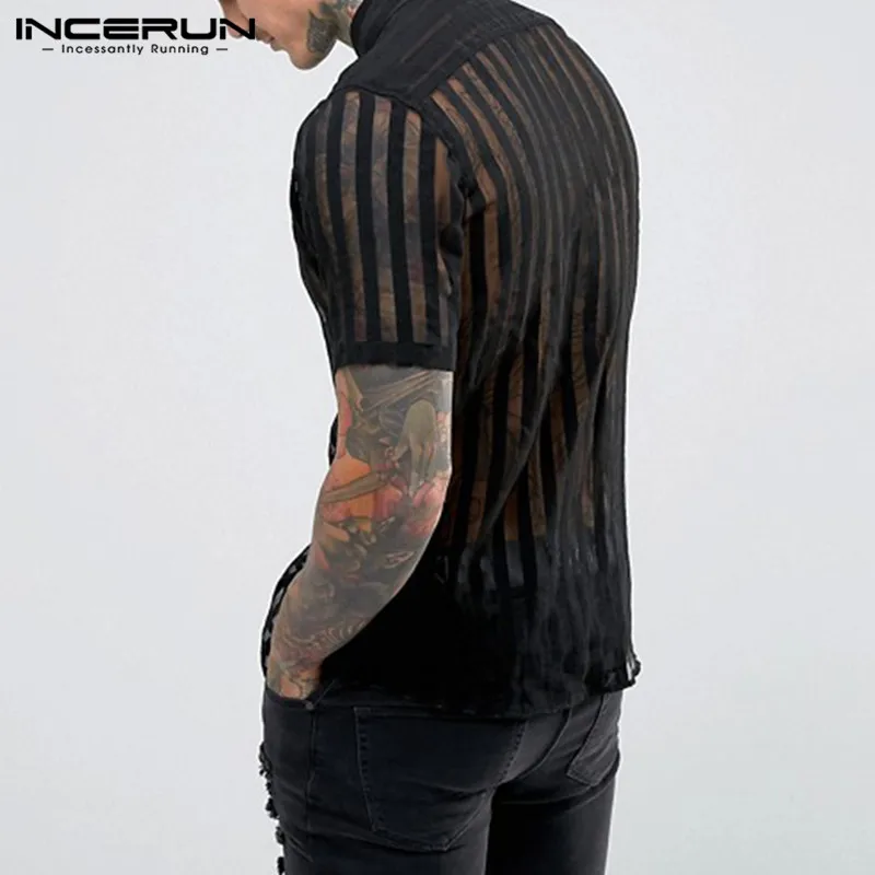 Рубашка INCERUN Мужская в полоску, модная прозрачная пикантная блуза с короткими рукавами, на пуговицах, для вечерние НКИ, ночного клуба, Размеры S-5XL, 2021