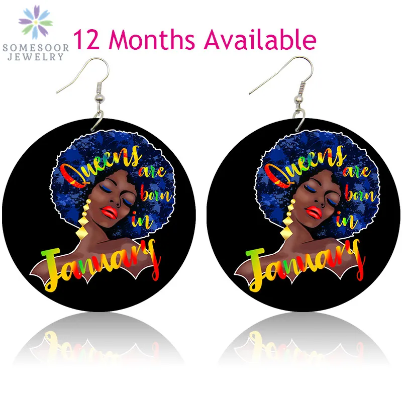 SOMESOOR двусторонние напечатанные черные серьги в виде королевы рожденных в течение 12 месяцев африканские деревянные серьги афро натуральные волосы меланин попбун для женщин Подарки