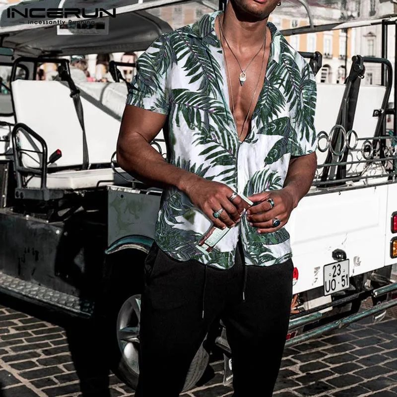 Гавайская рубашка INCERUN мужская с принтом, уличная одежда, блузка с коротким рукавом, повседневные пляжные рубашки для отпуска, 2022 5XL, на лето