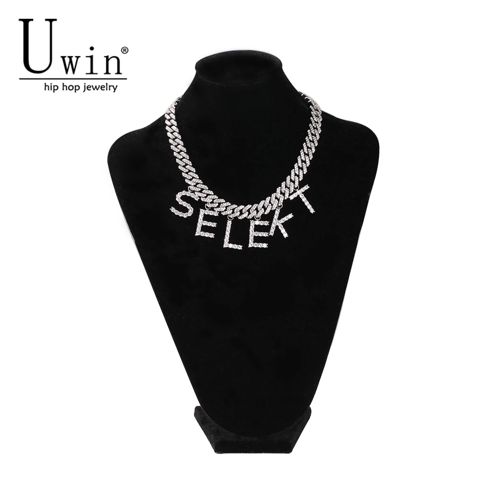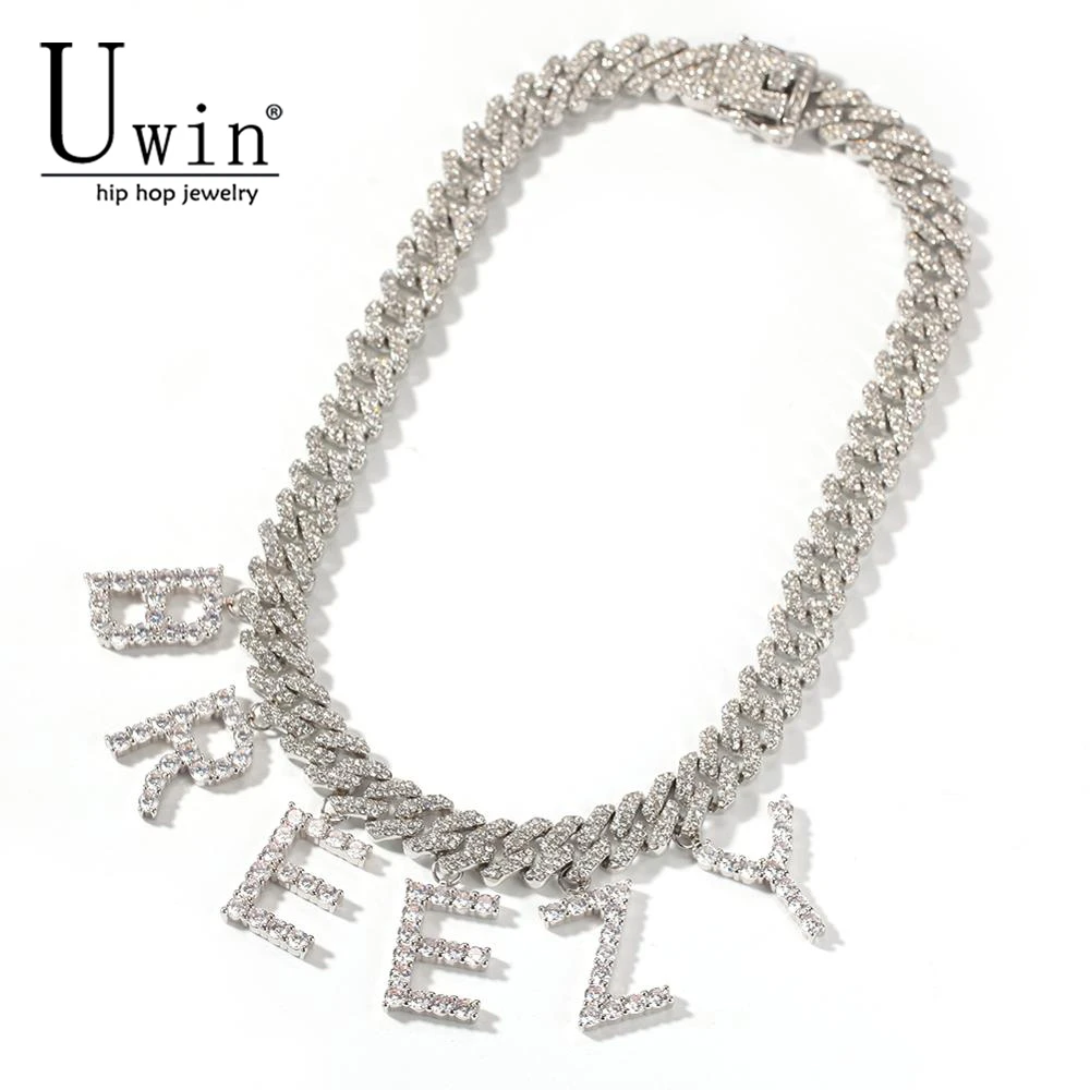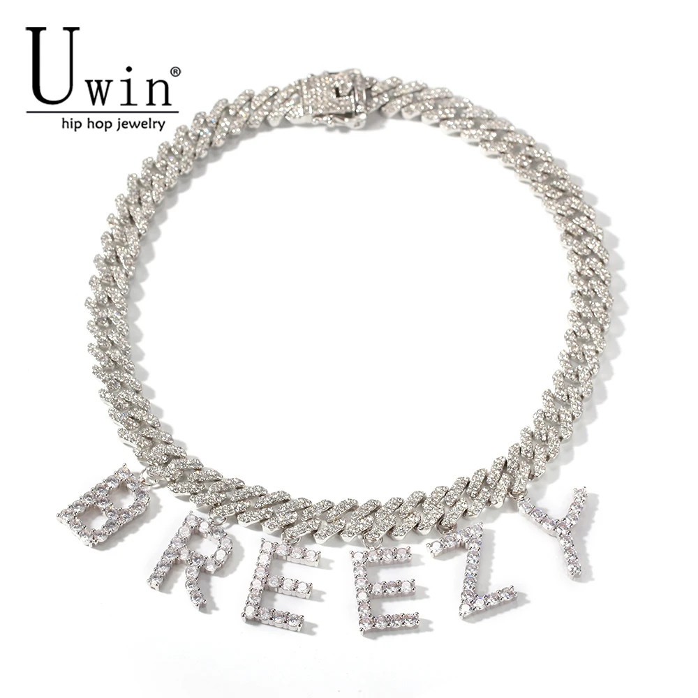 Uwin Custom S-Link Miami кубинское звено с теннисной надписью, 12 мм Ожерелье, цепочка, шикарный панк-ошейник, шикарные хип-хоп украшения