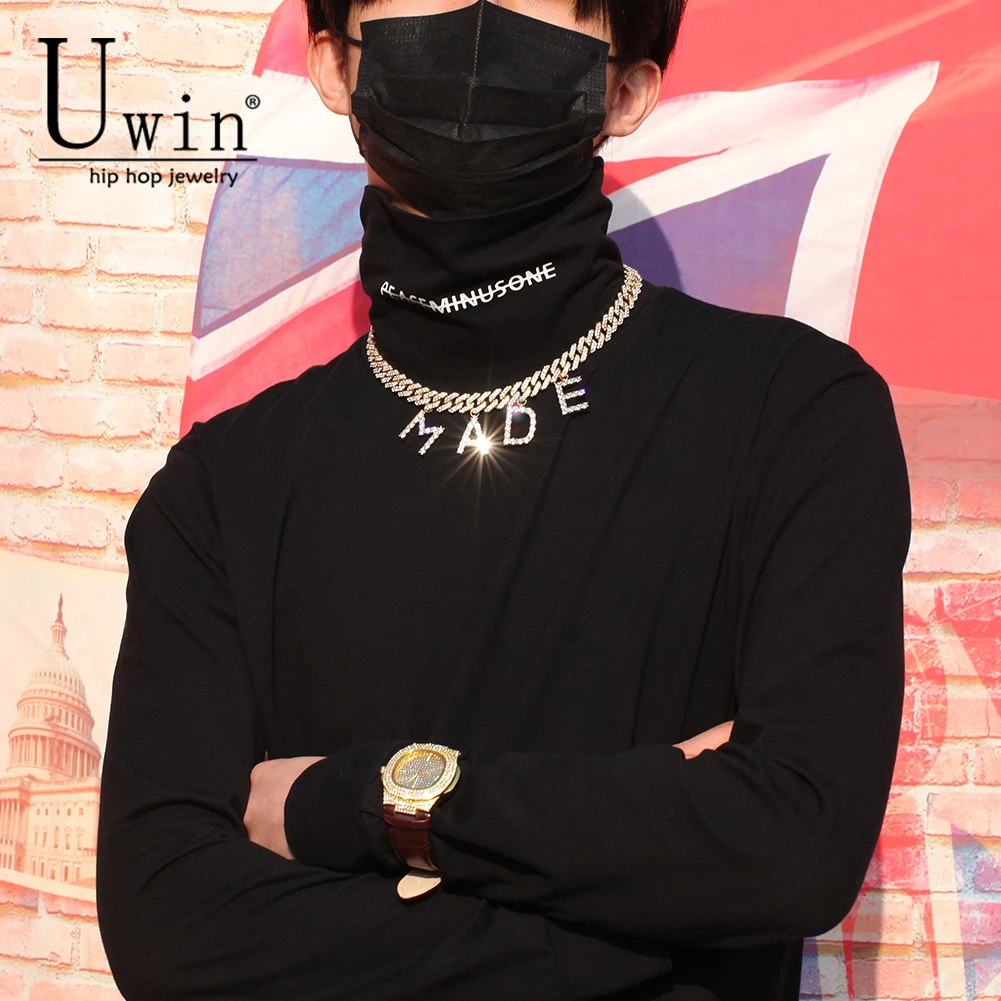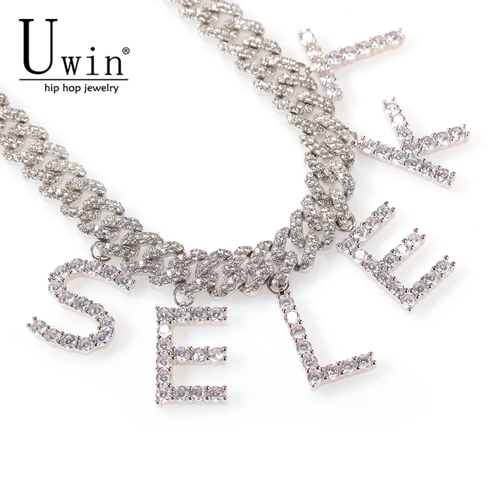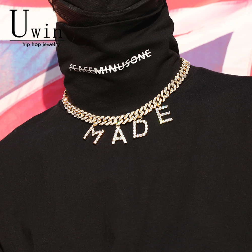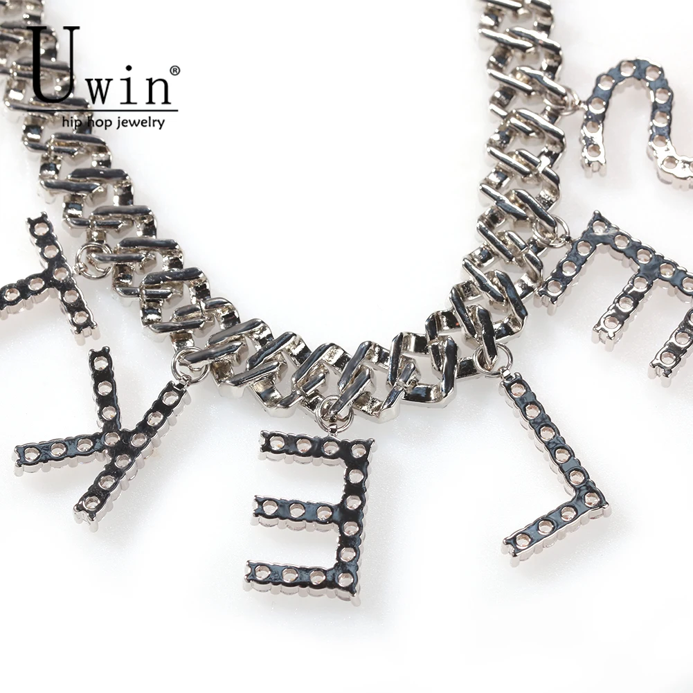 Uwin Custom S-Link Miami кубинское звено с теннисной надписью, 12 мм Ожерелье, цепочка, шикарный панк-ошейник, шикарные хип-хоп украшения