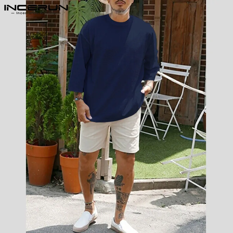 Футболка мужская хлопковая, с рукавами 34, 2021, размера плюс