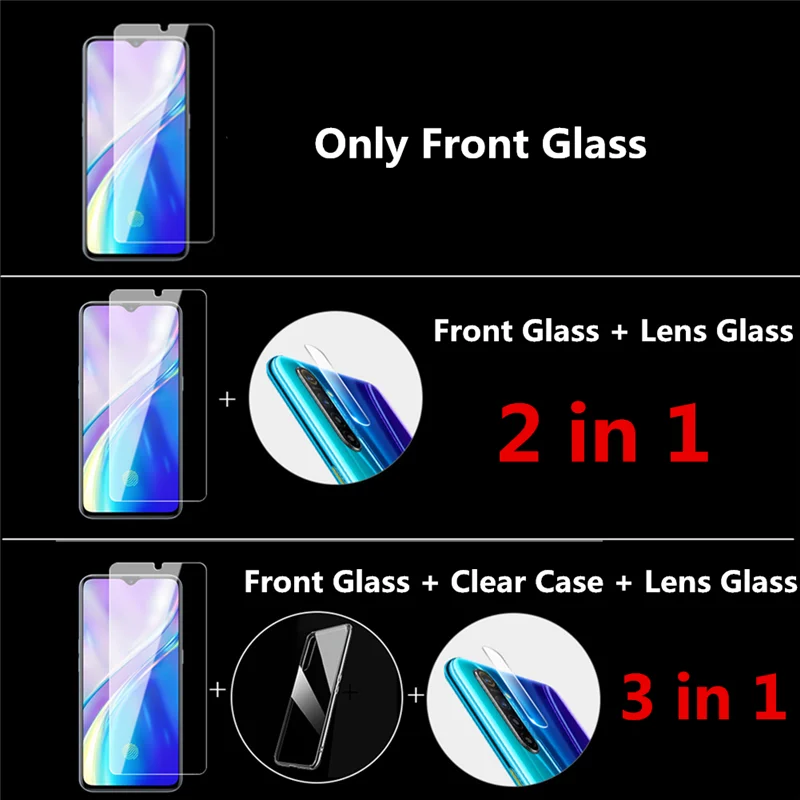 3-в-1 чехол + стекло камеры для Realme XT 5 Pro экран протектор стеклянного объектива на Oppo A9 2020 Realme X2 3 5 Pro Q 5s из закаленного стекла