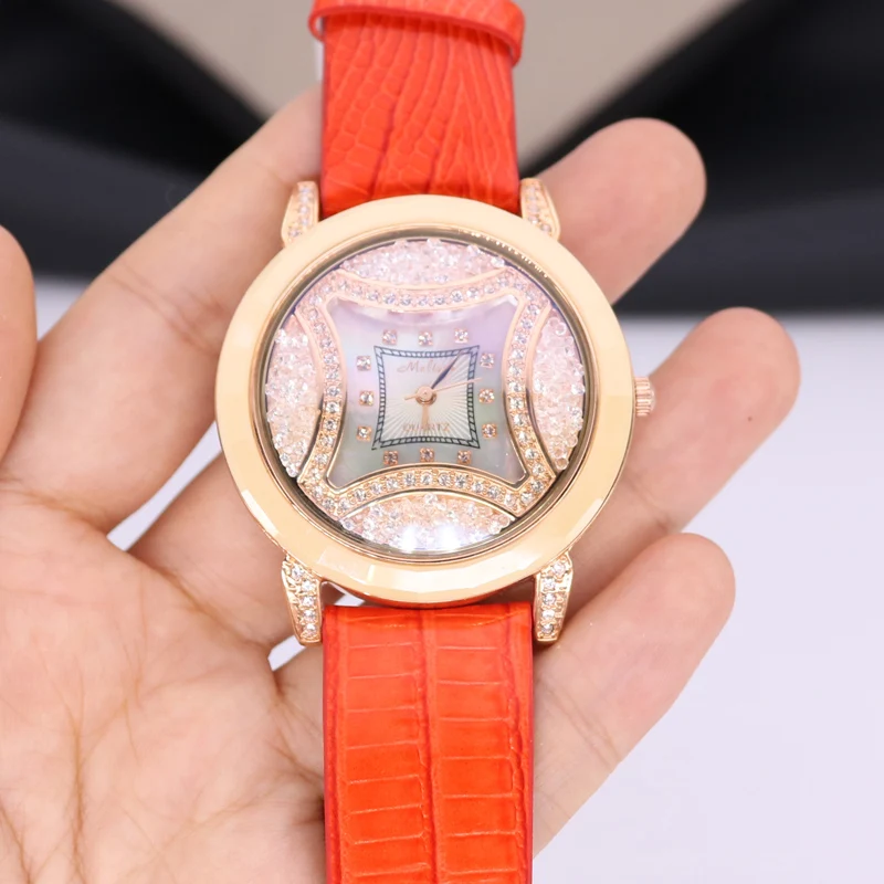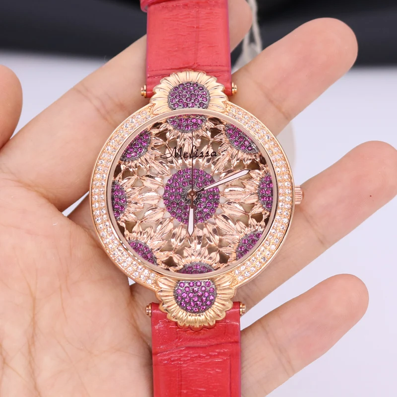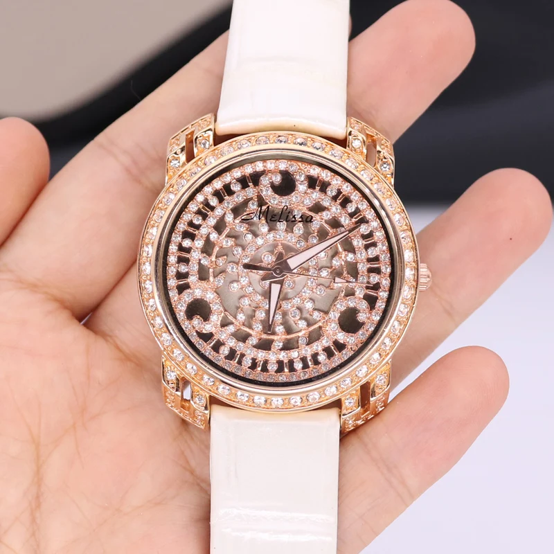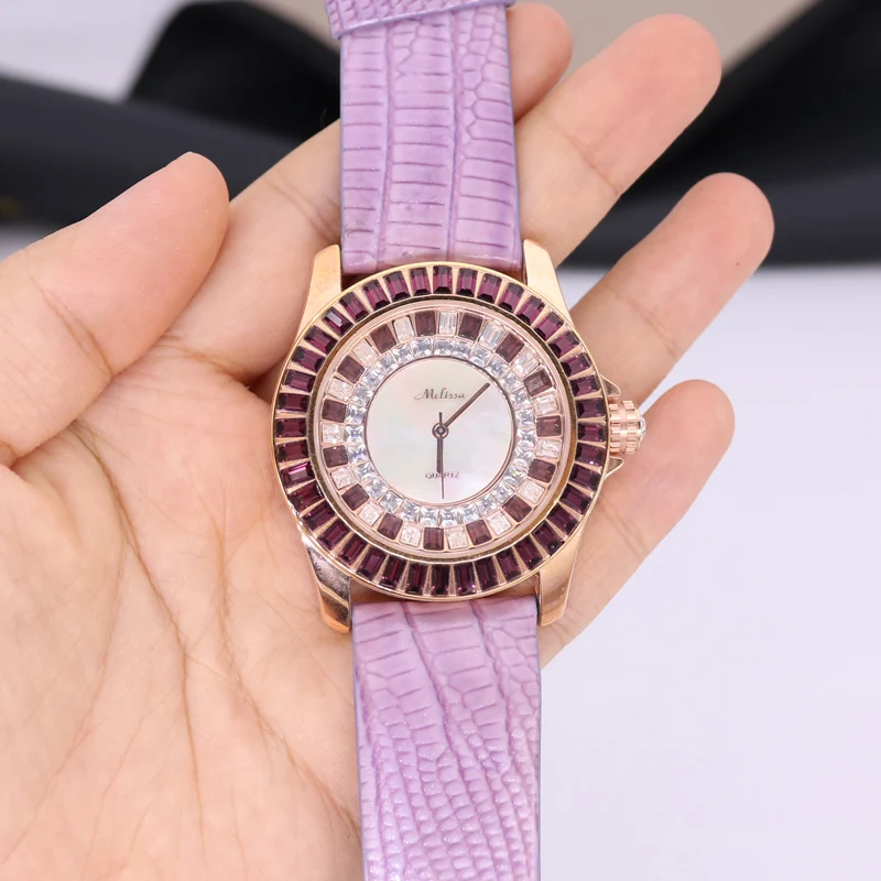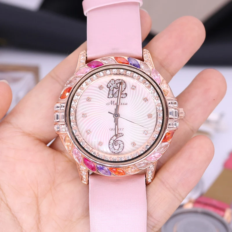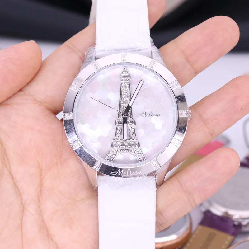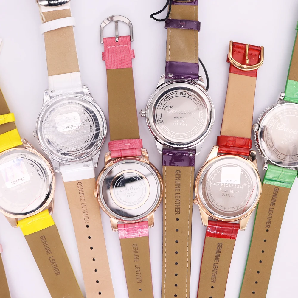 Распродажа! Скидка Melissa Кристалл старые типы Большие женские часы Япония Mov не модные часы браслет кожаный подарок для девушки
