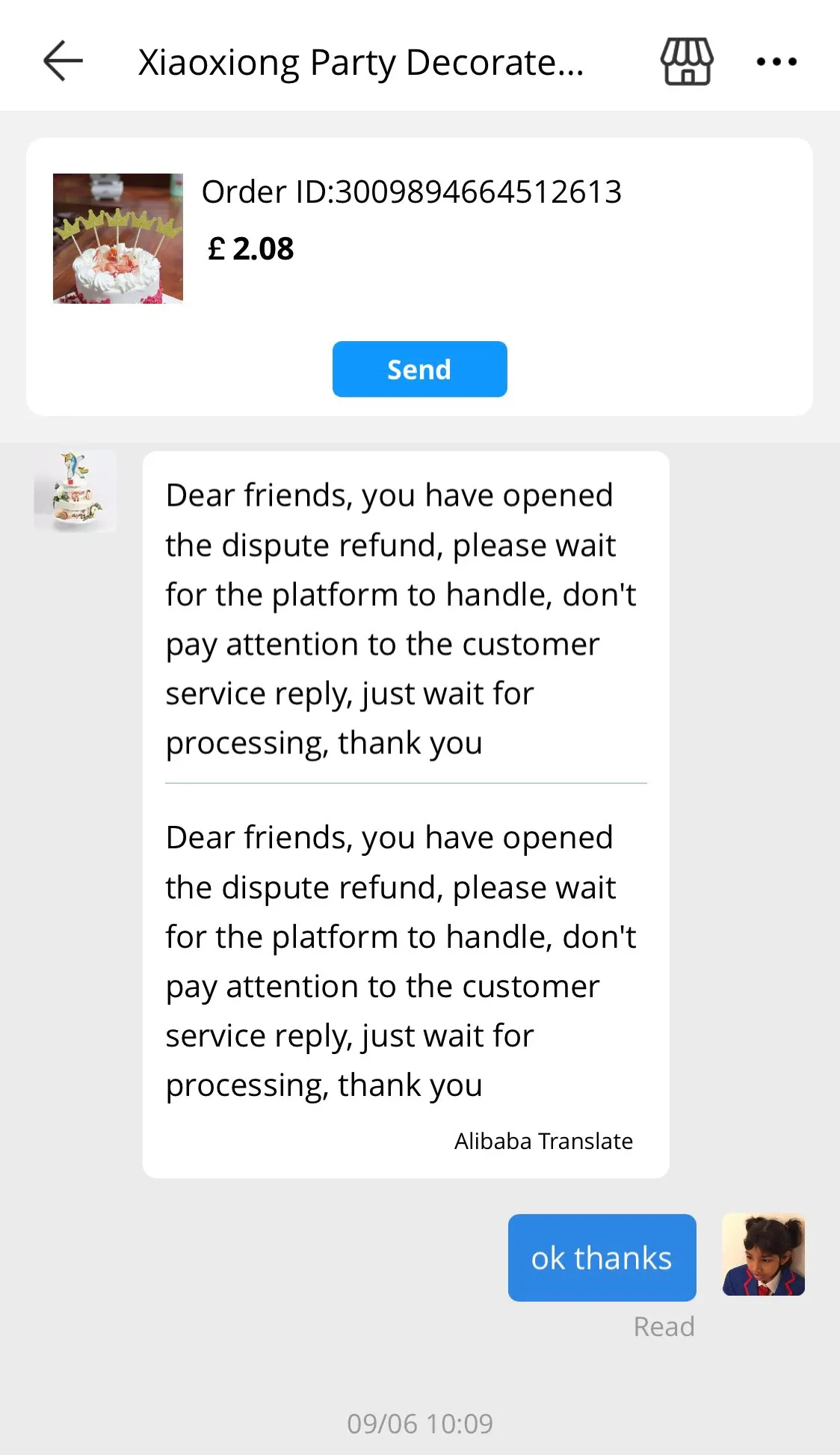 Не получил товар, когда его спросили, сколько времени потребуется, чтобы они сказали, что запросили возврат средств, когда я попробовал открыть спор, он не дал мне, и продолжает получать сообщение об ошибке. Поэтому я запросил возврат в качестве возвращаемого товара, но я пояснил на информации, что я сделал, и сказал это поставщику. Я потерял деньги. Совсем не доволен. Первый раз, когда я оставляю отрицательный комментарий.