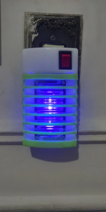 Не более, чем светло-голубой. Не притягивает, отталкивает или убивает комаров. Деньги на ветер. Подключен с момента прибытия и не снижается частота в моем доме. Не нашли комаров.