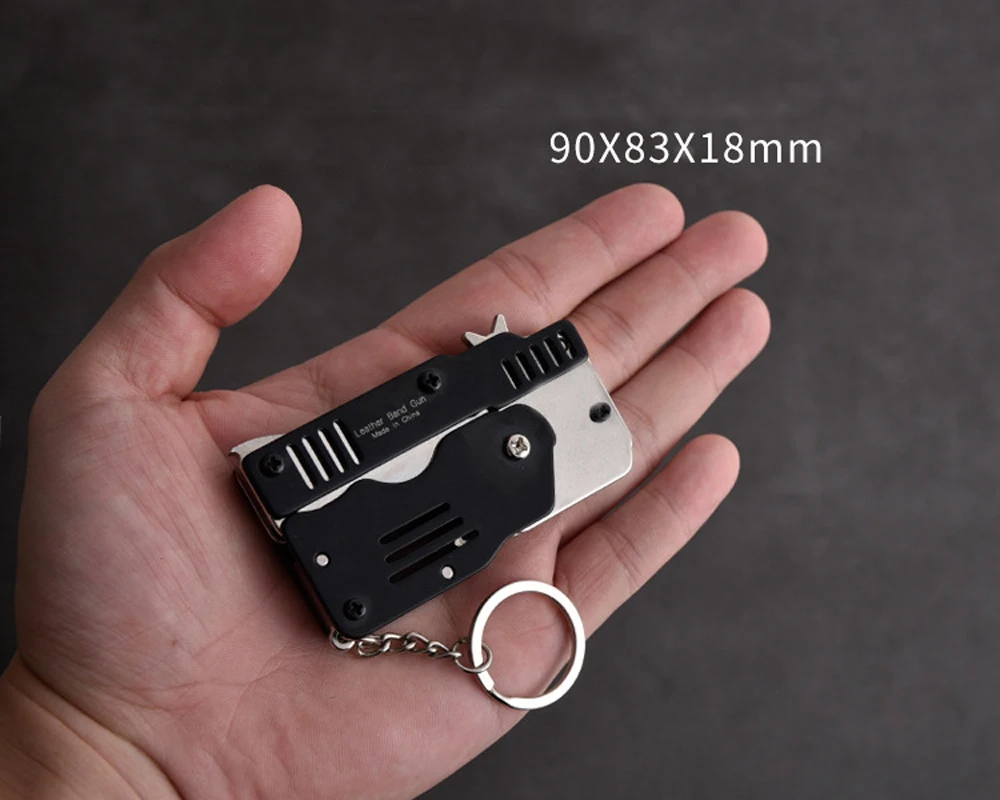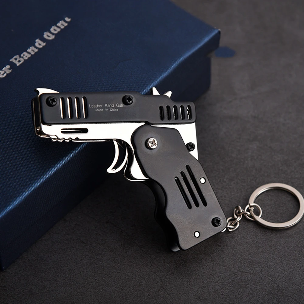 Пистолет металлический складной пистолет с резиновой лентой из нержавеющей стали, пусковое устройство с шестью лопастями для брелка для стрельбы, игрушка для мальчиков, подарок на день рождения