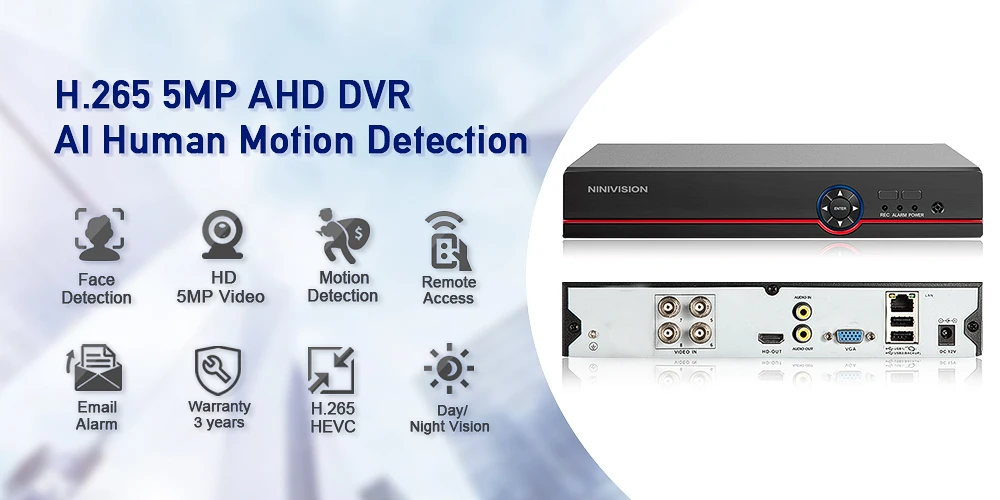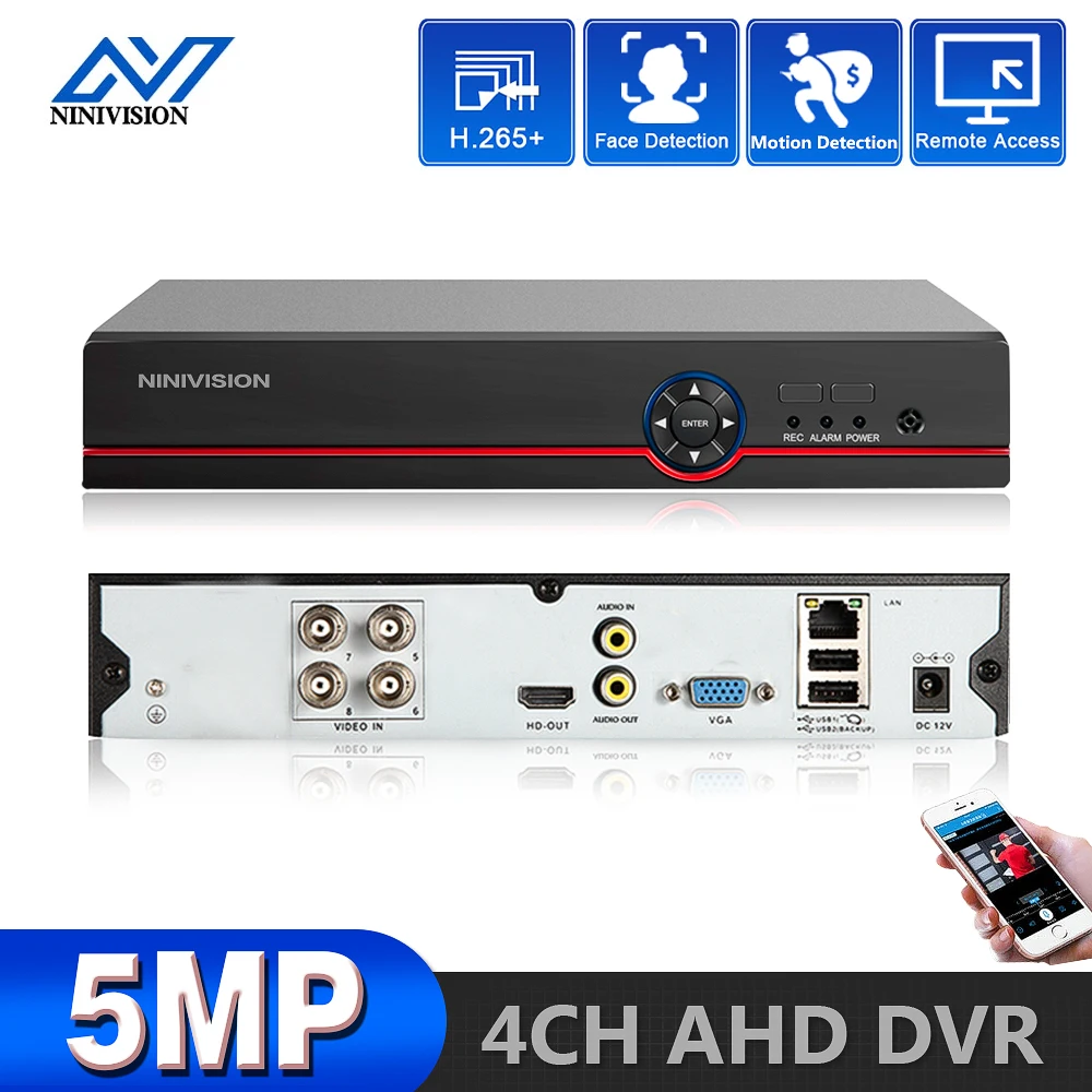 NINIVISION H.265 + H.264 4ch AHD DVR CCTV 8Ch 5MP Гибридный безопасности DVR NVR рекордер камера Coxial контроль P2P XVI/AHD/TVI/CVI/CVBS/IP