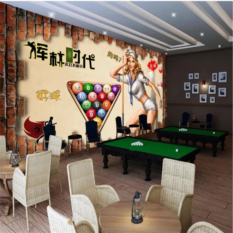 Пользовательские тексты бильярдные залы сексуальная красота 3D кирпичная стена фон настенная бумага бильярдный зал промышленный Декор обои 3D