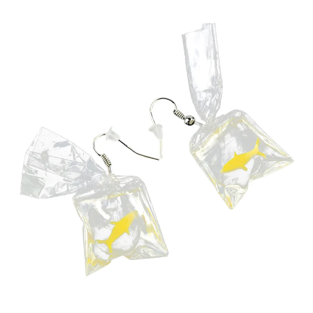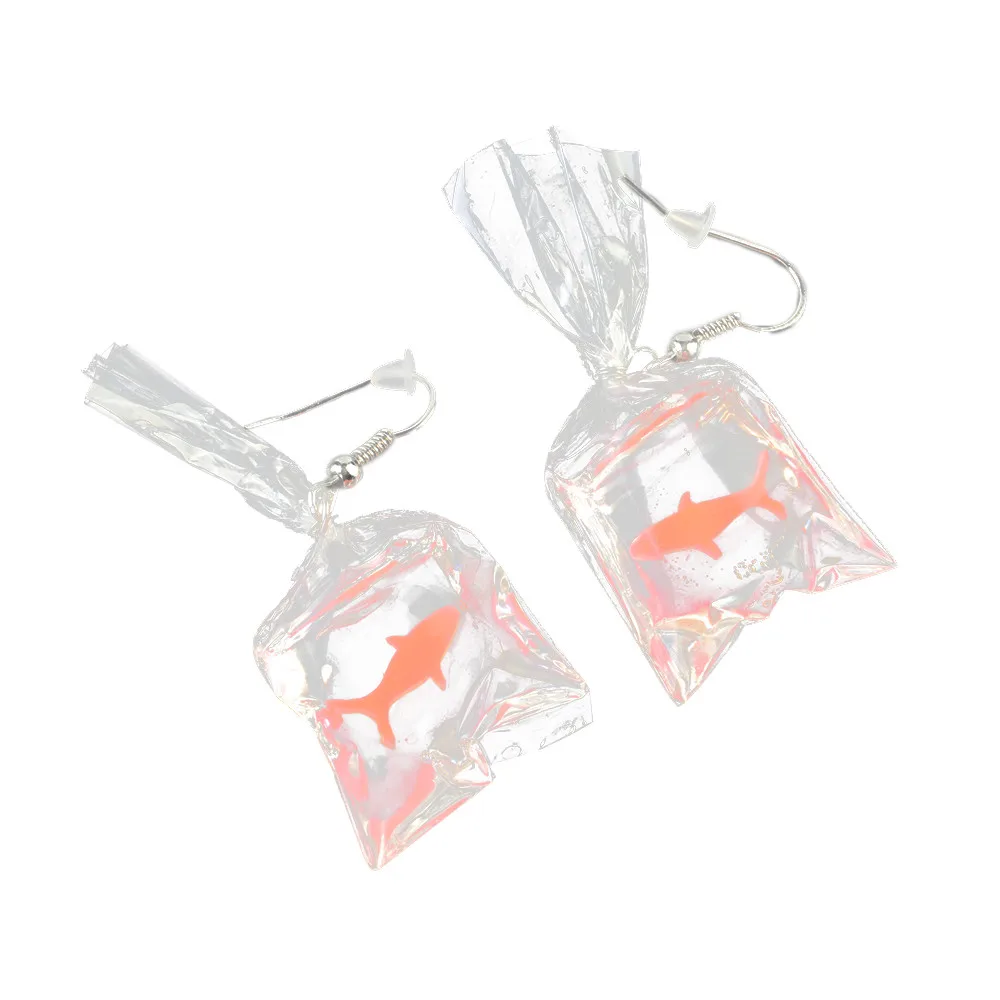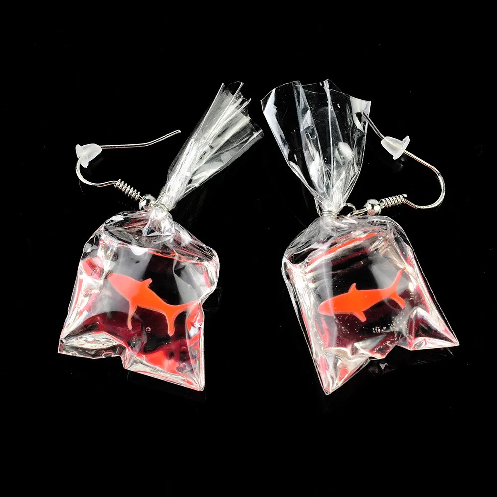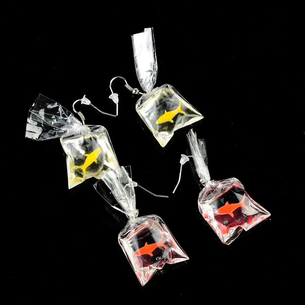 Забавные мультяшные золотые рыбки в форме сумки Серьги, очаровательные серьги из смолы