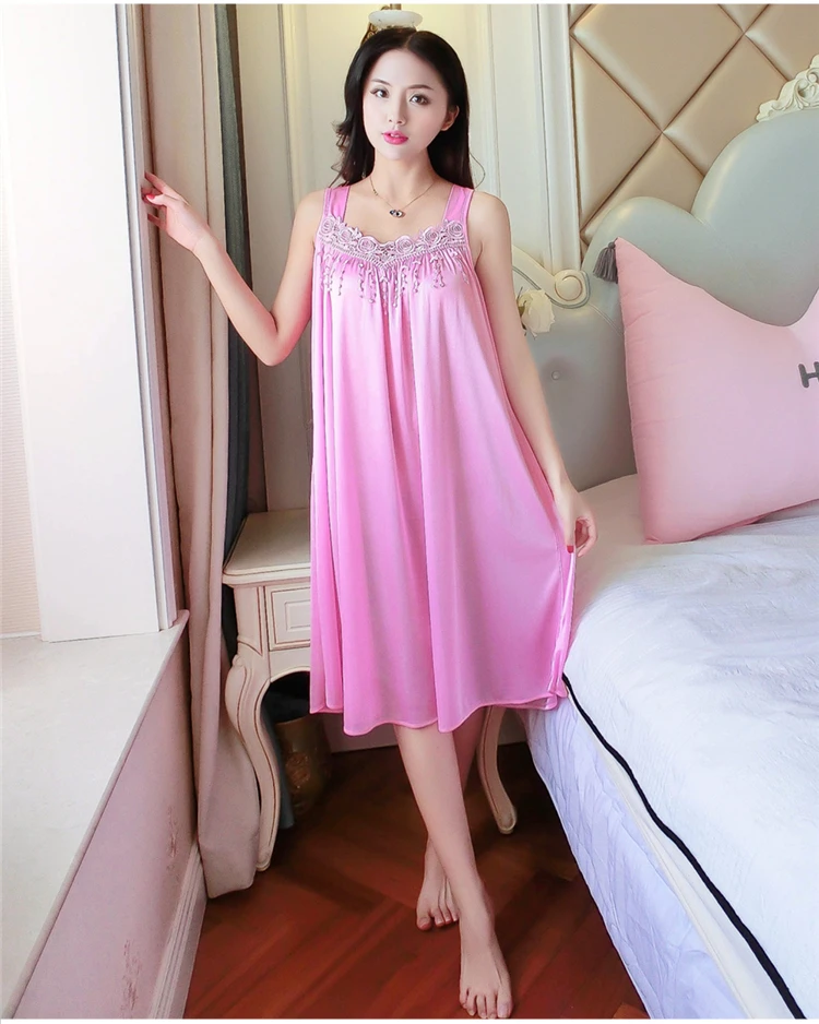 Большой размер 4XL Летняя женская ночная рубашка шелковая одежда для сна Женское ночное платье большого размера сексуальные ночные рубашки для женщин без рукавов ночное белье