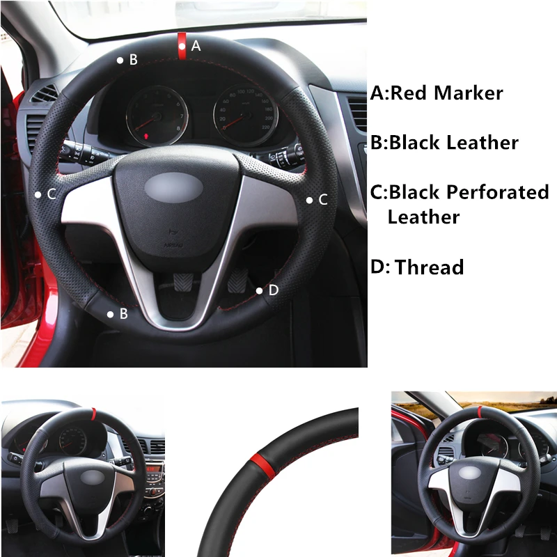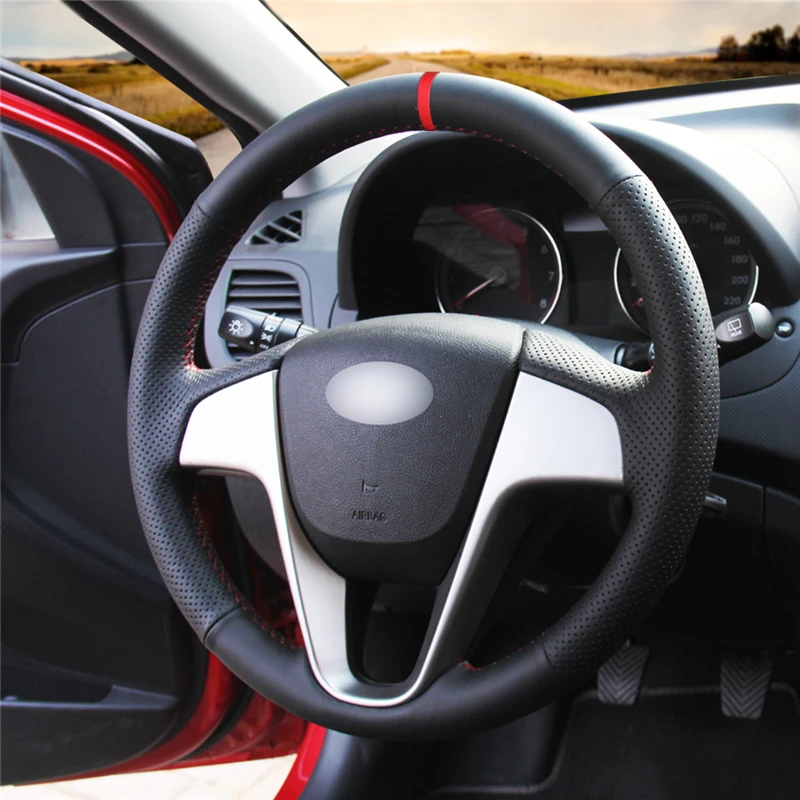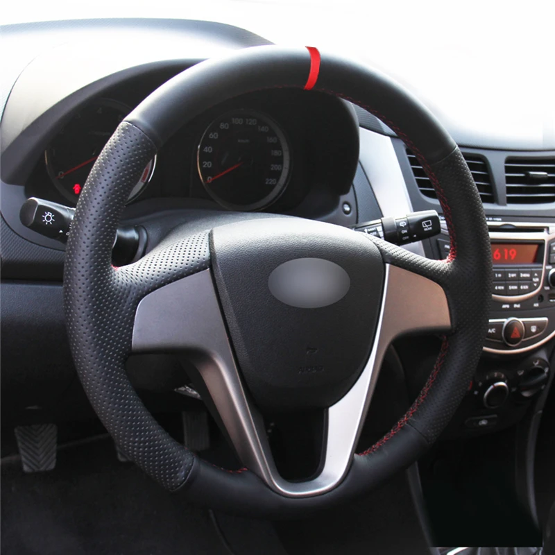 Черный чехол рулевого колеса автомобиля из искусственной кожи для Hyundai Solaris (RU) 2010-2016 Verna 2010-2016 i20 2009-2015 Accent