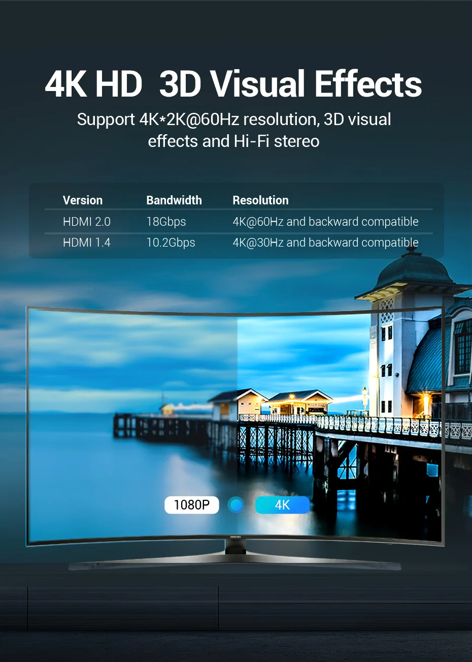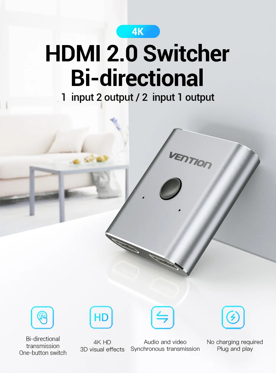 Коммутатор HDMI, 4K, 2 порта, двунаправленный, 1x22x1, разветвитель HDMI, порты Sup Ultra HD, 4K, 1080P, 3D HDR HDCP, для PS4, Xbox, HDTV
