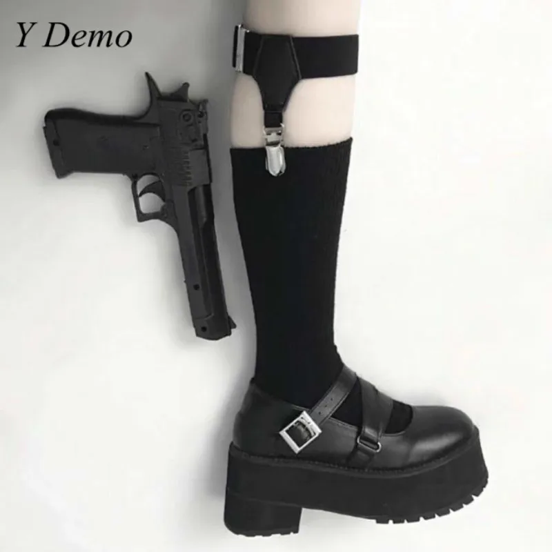Женские носки-панк-подвязка в стиле рок, уличная одежда, черные подтяжки с пряжками носки, женские аксессуары