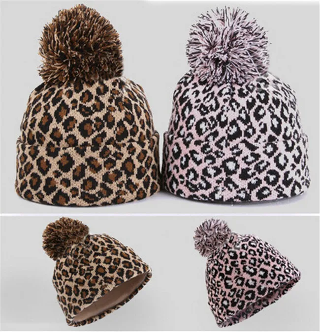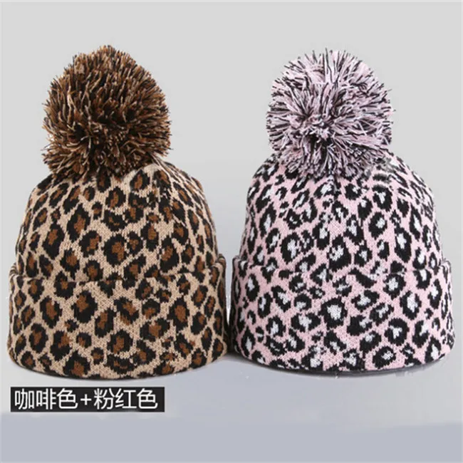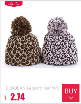 BONJEAN Мужскаяженская вязаная шапка в стиле хип-хоп с леопардовым принтом, зимние плотные теплые шапки, помпоновая шапочка, модные шапки BJ2035