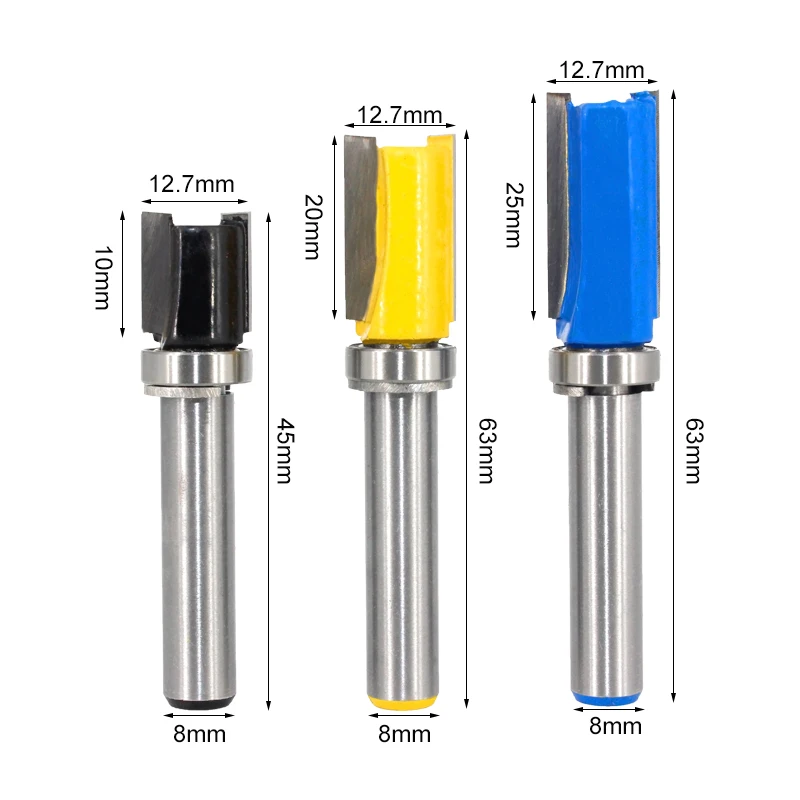 Фреза по дереву с хвостовиком 8 мм, 1 шт., фреза для резьбы по дереву, фреза с узором, насадка для верхнего нижнего подшипника, шаблон лезвия 12 дюйма, резак для дерева