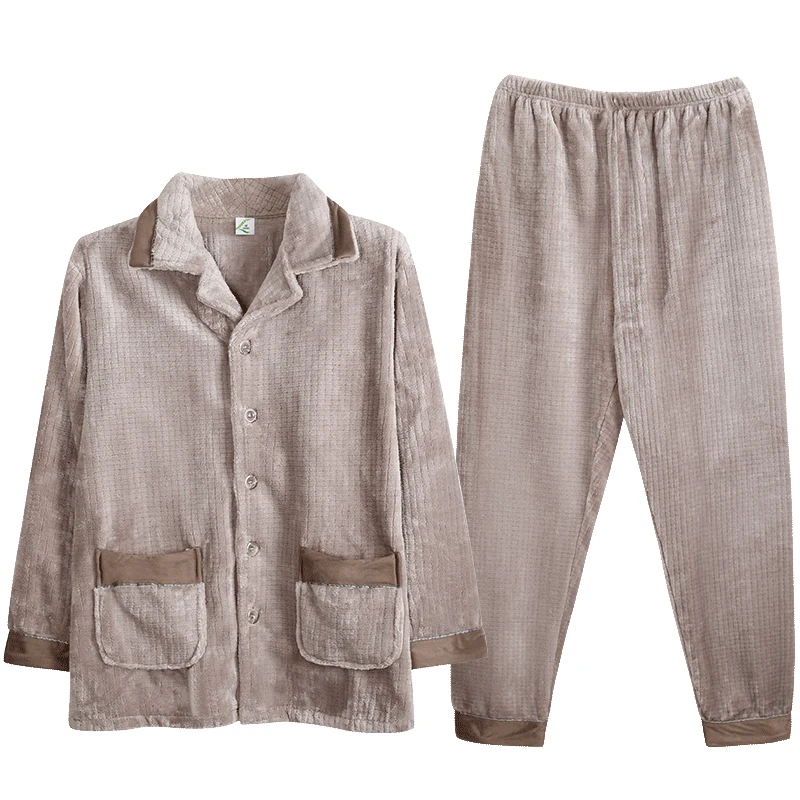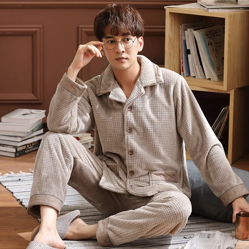 Мужской кардиган пижамный комплект теплая Фланелевая пижама с длинными рукавами для мальчиков осень-зима Pyjama свободные мужские домашние тапочки комплект из кораллового флиса, одежда для сна, топ + штаны