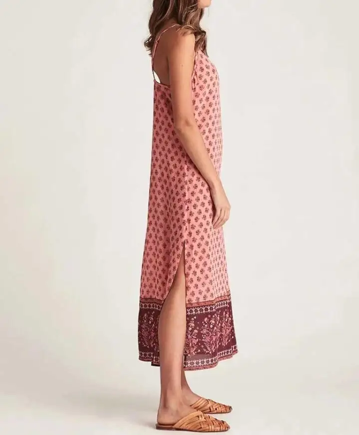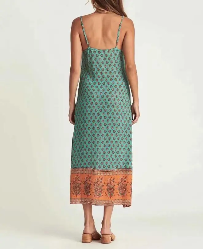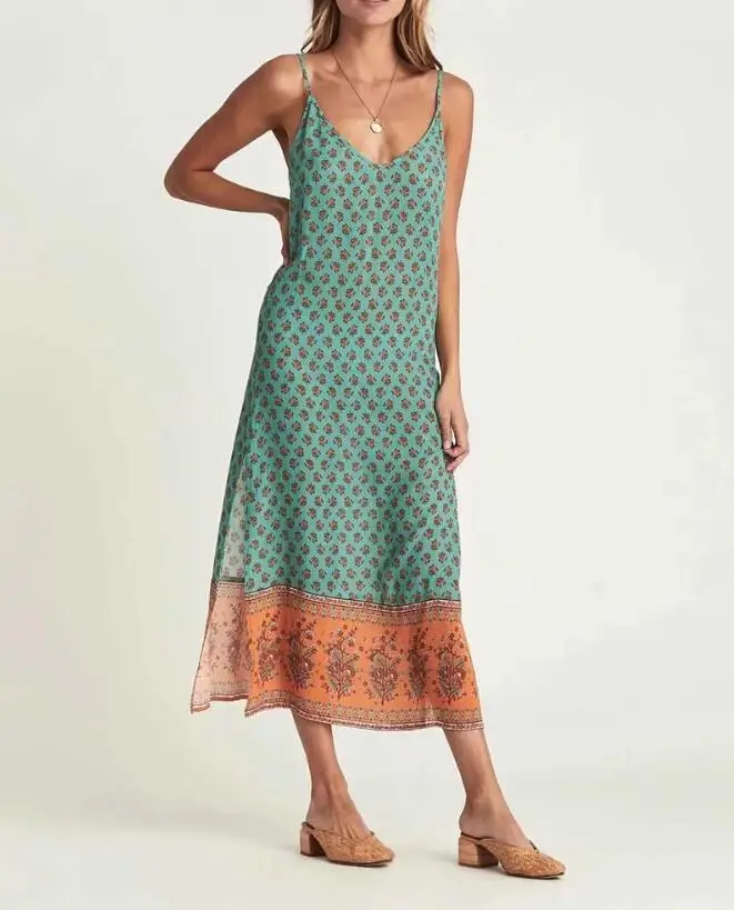 Платье женское длинное в богемном стиле, праздничное платье на бретелях-спагетти с V-образным вырезом и цветочным принтом, с Боковым Разрезом, лето 2020