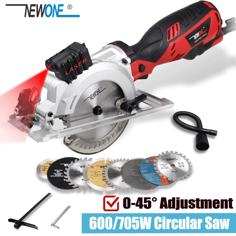 Пила циркулярная NEWONE компактная, 600 Вт, 3500 обмин, с лазерной направляющей, небольшая, но мощная, идеально подходит для резки дерева, плитки, алюминия и пластика