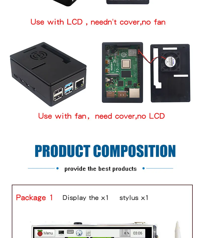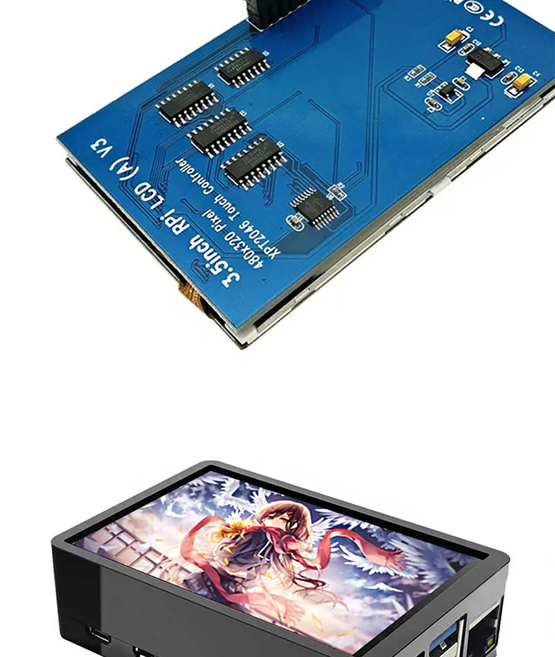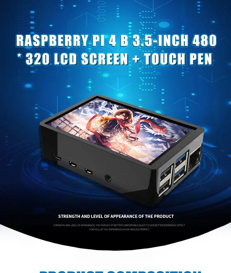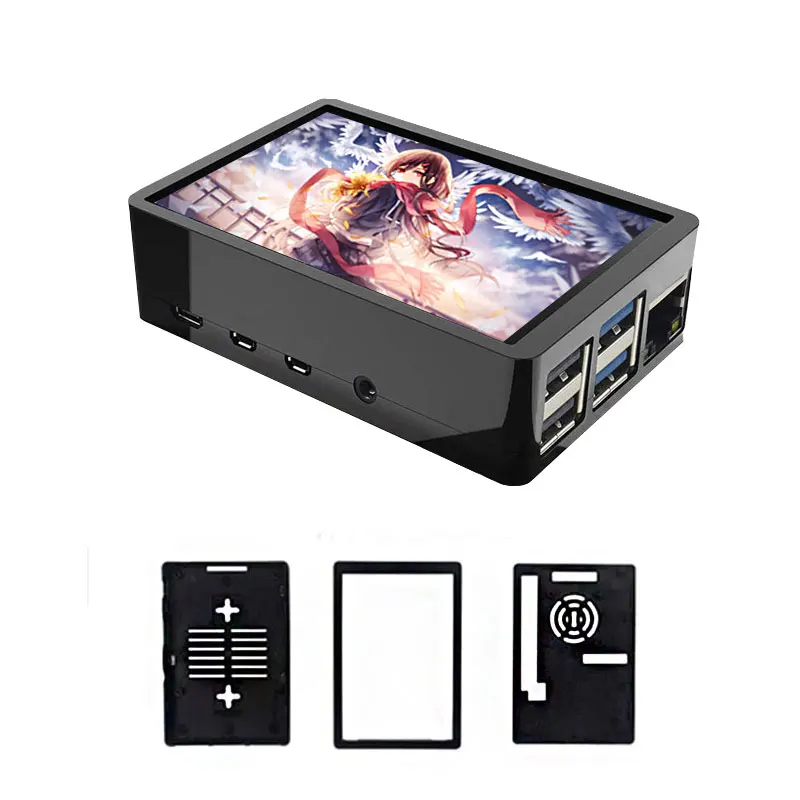 Сенсорный экран для Raspberry Pi 4, ЖК-дисплей TFT 3,5*480 GPIO, 320 дюйма, чехол из АБС-пластика, блок питания, вентилятор, карта памяти 64 ГБ, для Raspberry Pi 4B
