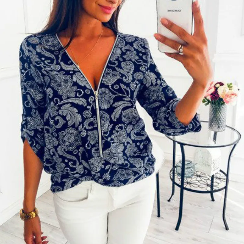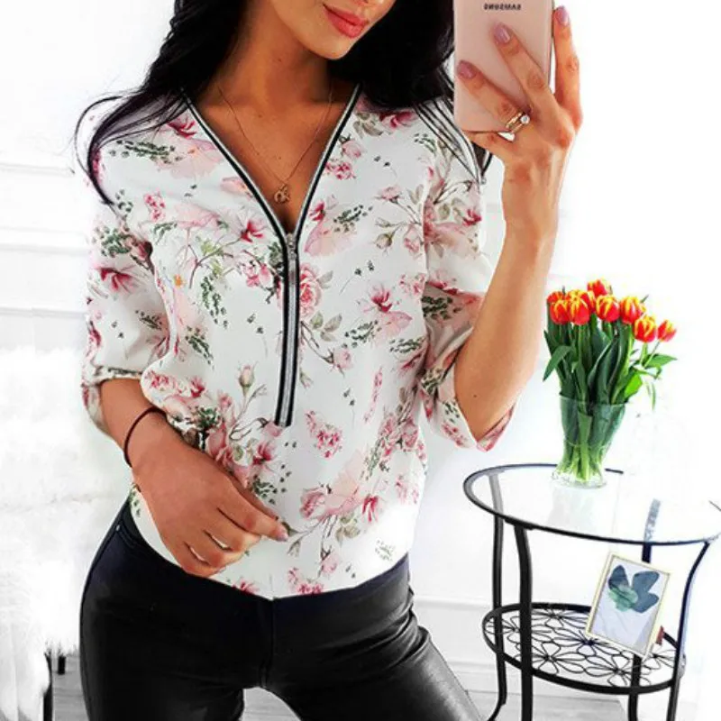 Женская хлопковая рубашка, в горошек, с V-образным вырезом, на молнии, винтажная, S-5XL, размера плюс