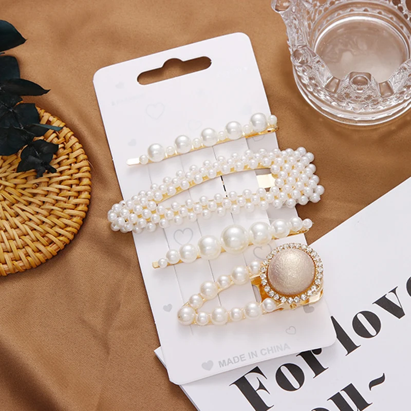 Заколки для волос женские Геометрические с жемчугом, 345 шт.компл.