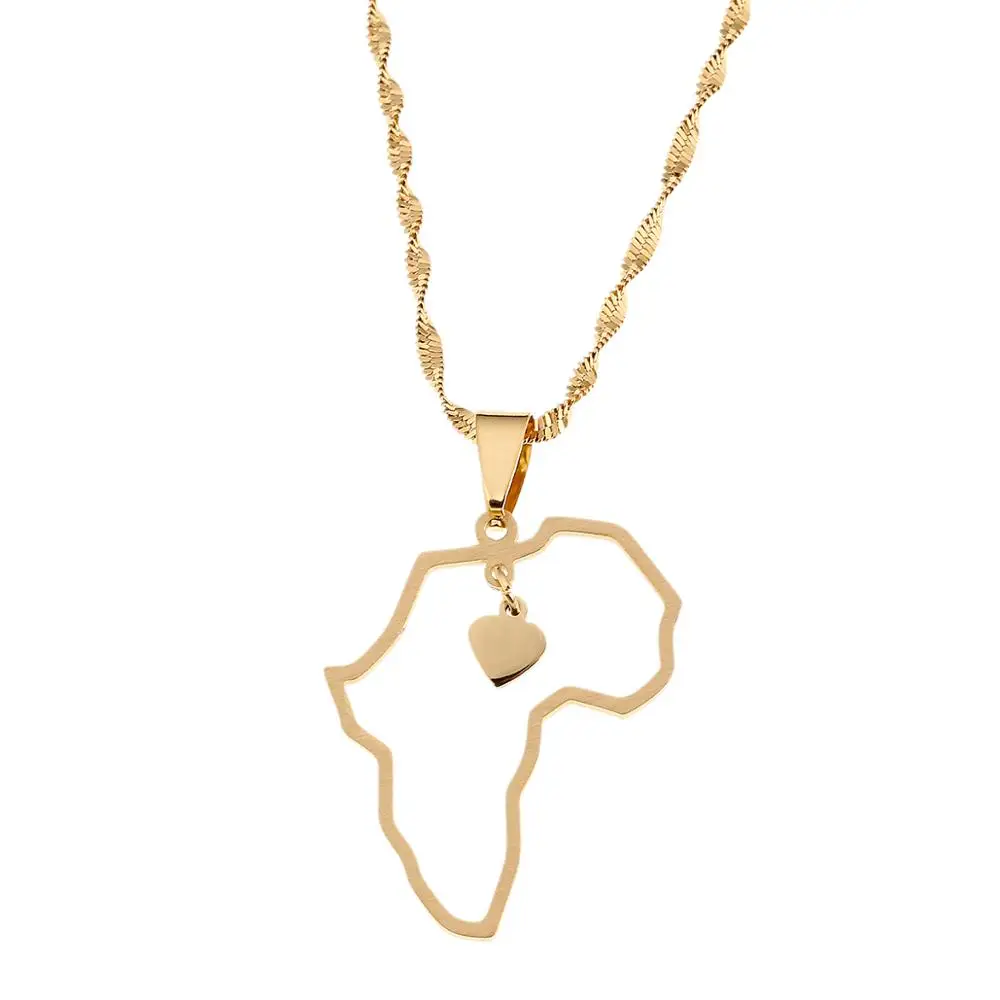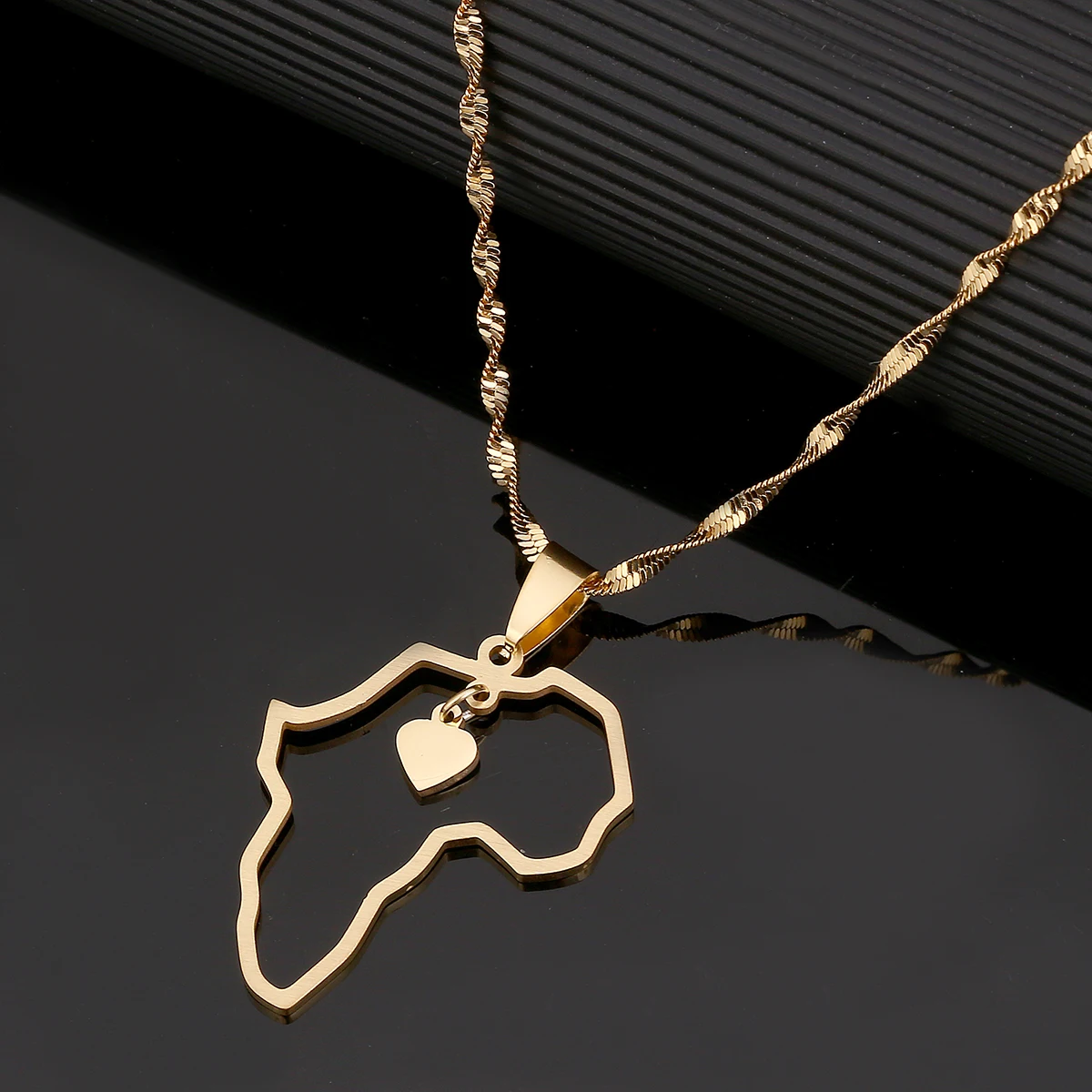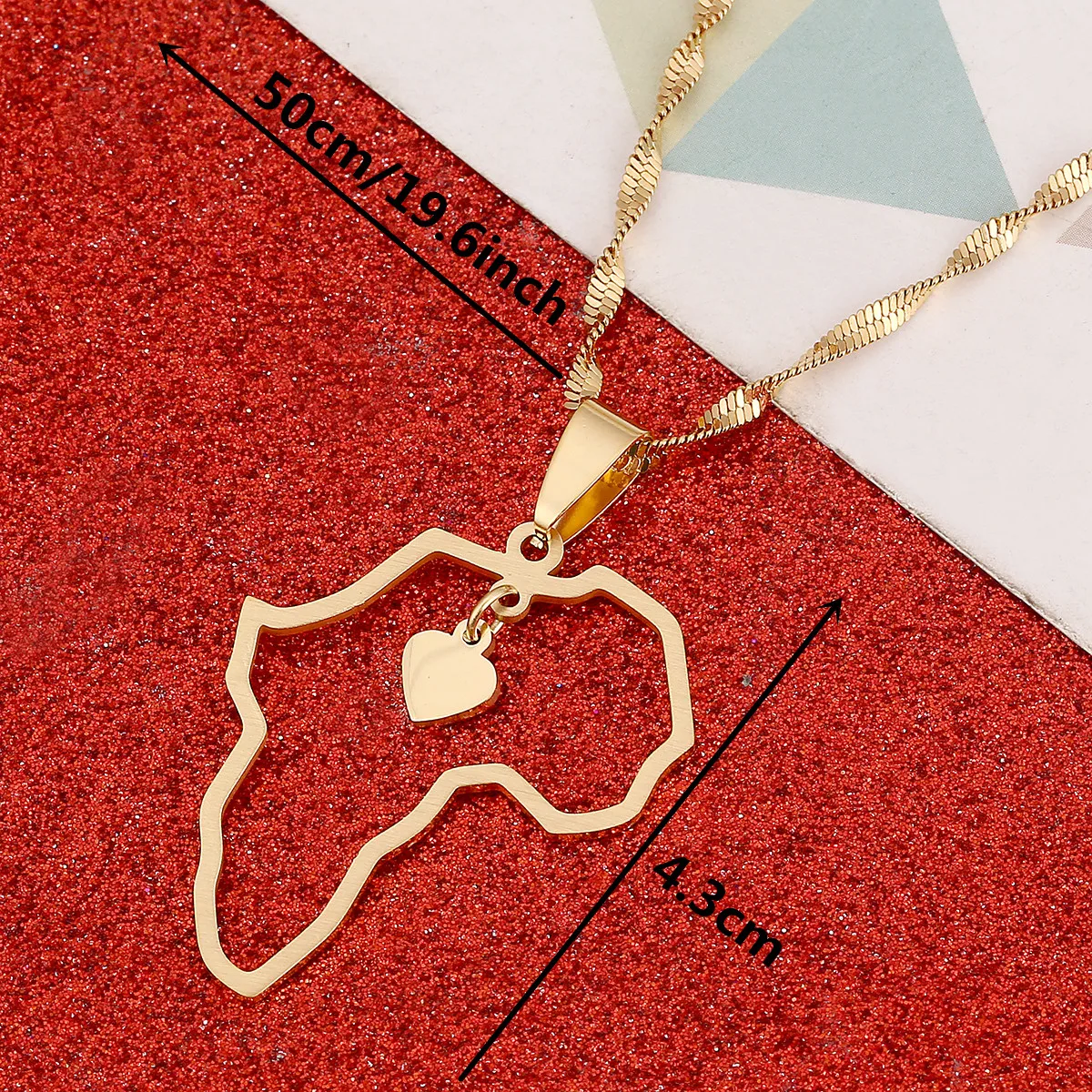 Ожерелья из нержавеющей стали золотого цвета Кулон Карта Африки, африканские карты, подвески, ювелирные изделия в форме сердца