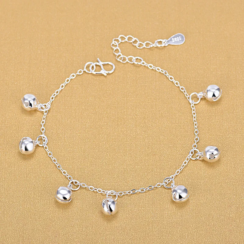 Женский ножной браслет на удачу из стерлингового серебра 925 пробы, Изящные Ювелирные украшения для девушек, элегантные аксессуары, браслет с колокольчиками