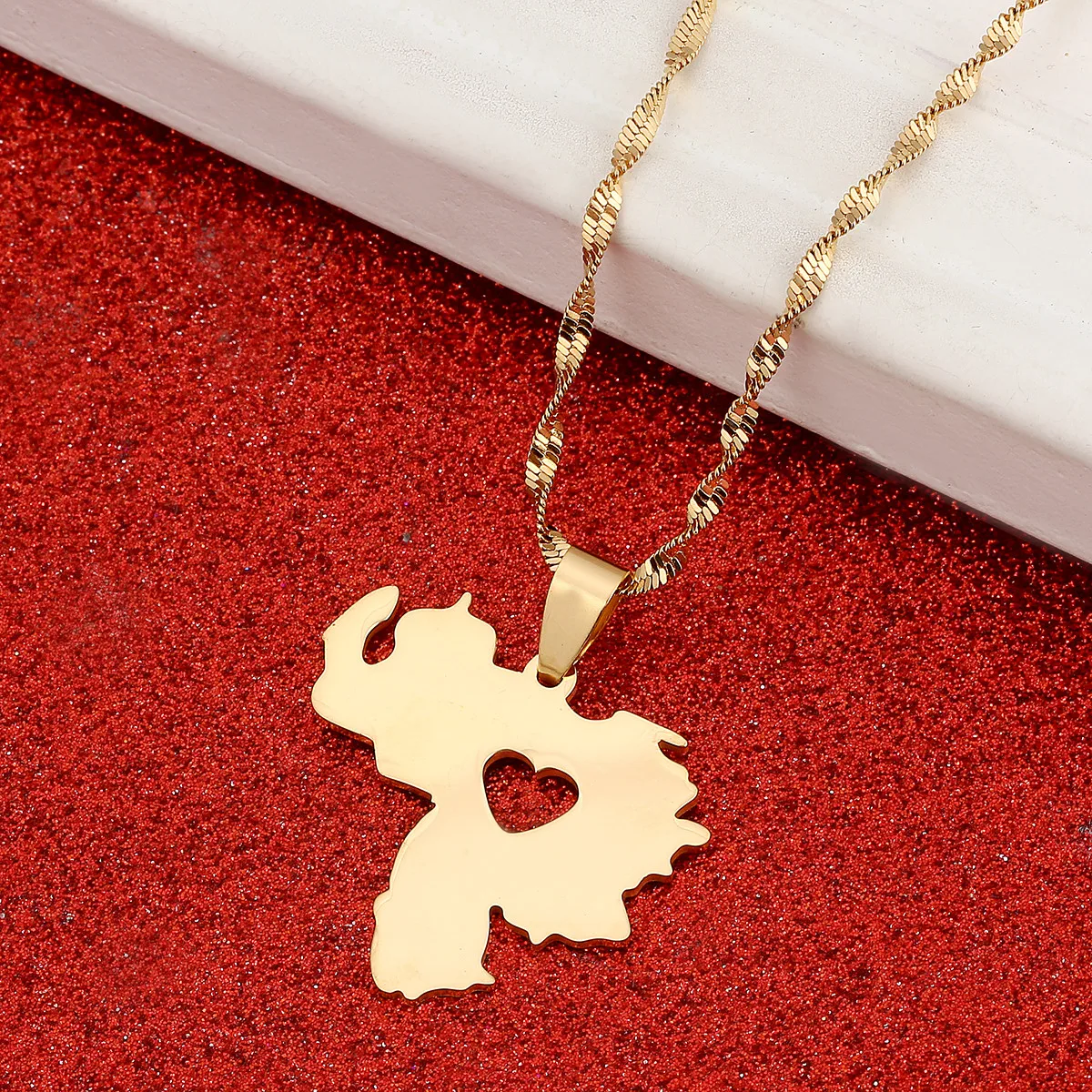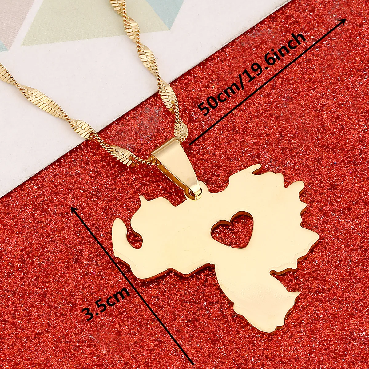 Ожерелье из нержавеющей стали с подвеской в виде карты Венесуэлы для женщин золотого цвета, ювелирные изделия в виде сердца