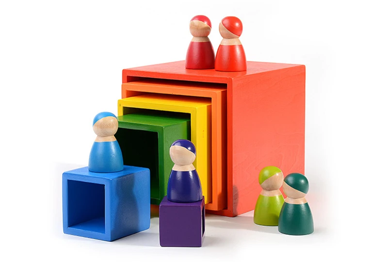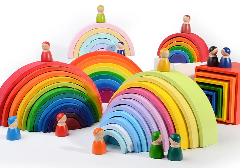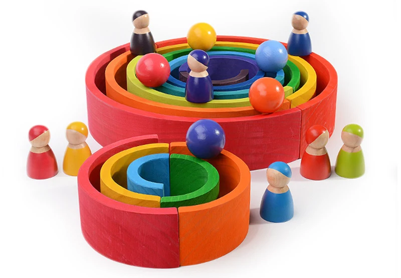 Игрушки Монтессори строительные радужные Деревянные игрушки Монтесс...
