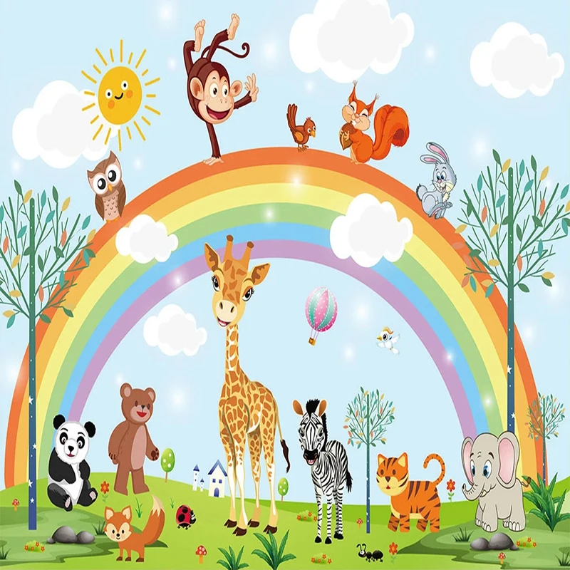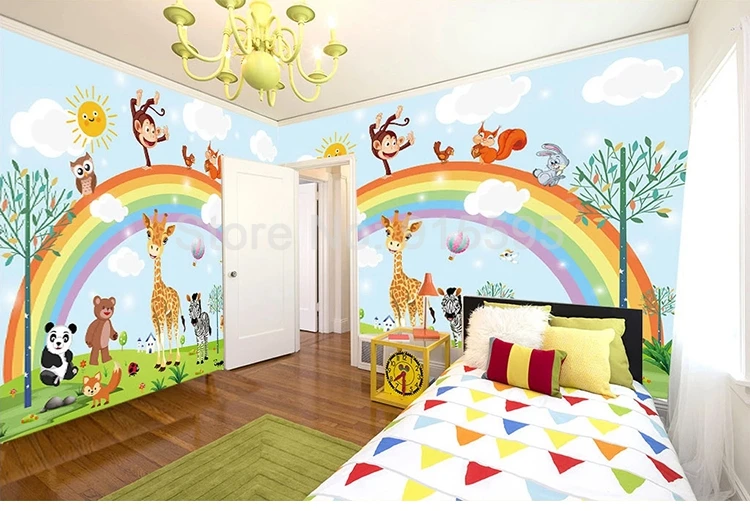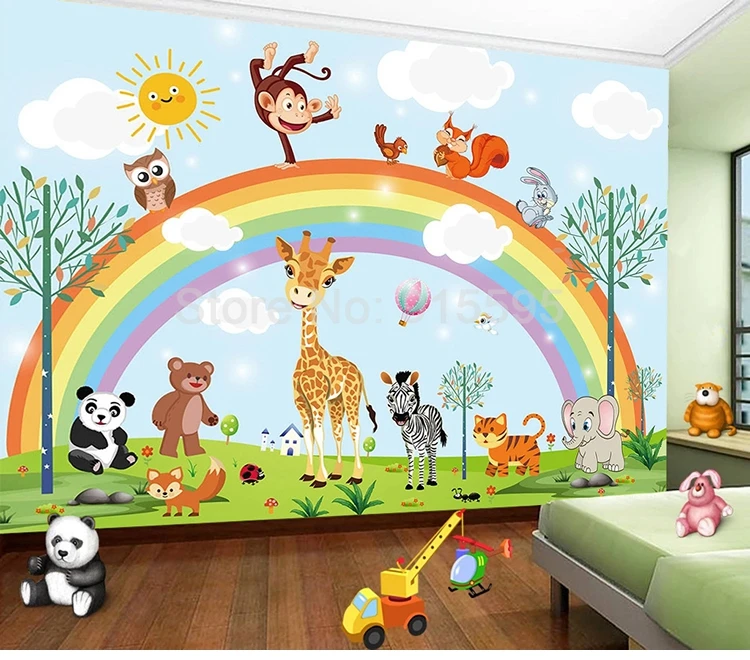 3D Ручная роспись мультфильм Радуга животных детский сад детская комната спальня шкаф обои настенная роспись наклейка домашний декор
