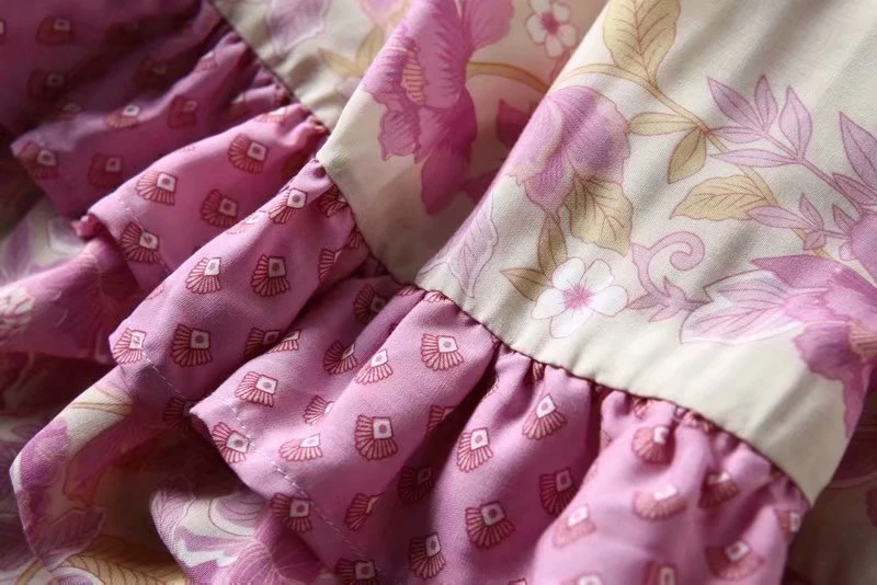 Платье в стиле бохо из вискозы и хлопка, розовое Макси-платье с цве...
