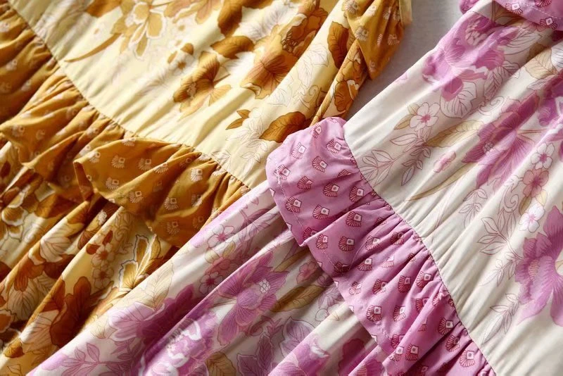 Винтажное шикарное женское платье в стиле хиппи с цветочным принтом...