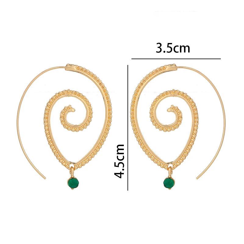 Новые эллиптические Спиральные серьги для женщин, преувеличенные серьги-кольца зеленого цвета в стиле ретро, золотые серьги-кольца