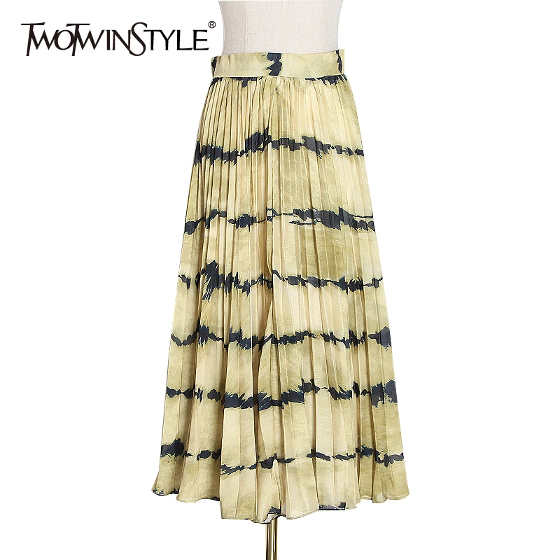 Женская плиссированная юбка TWOTWINSTYLE, повседневная юбка миди в полоску с высокой талией, 2021